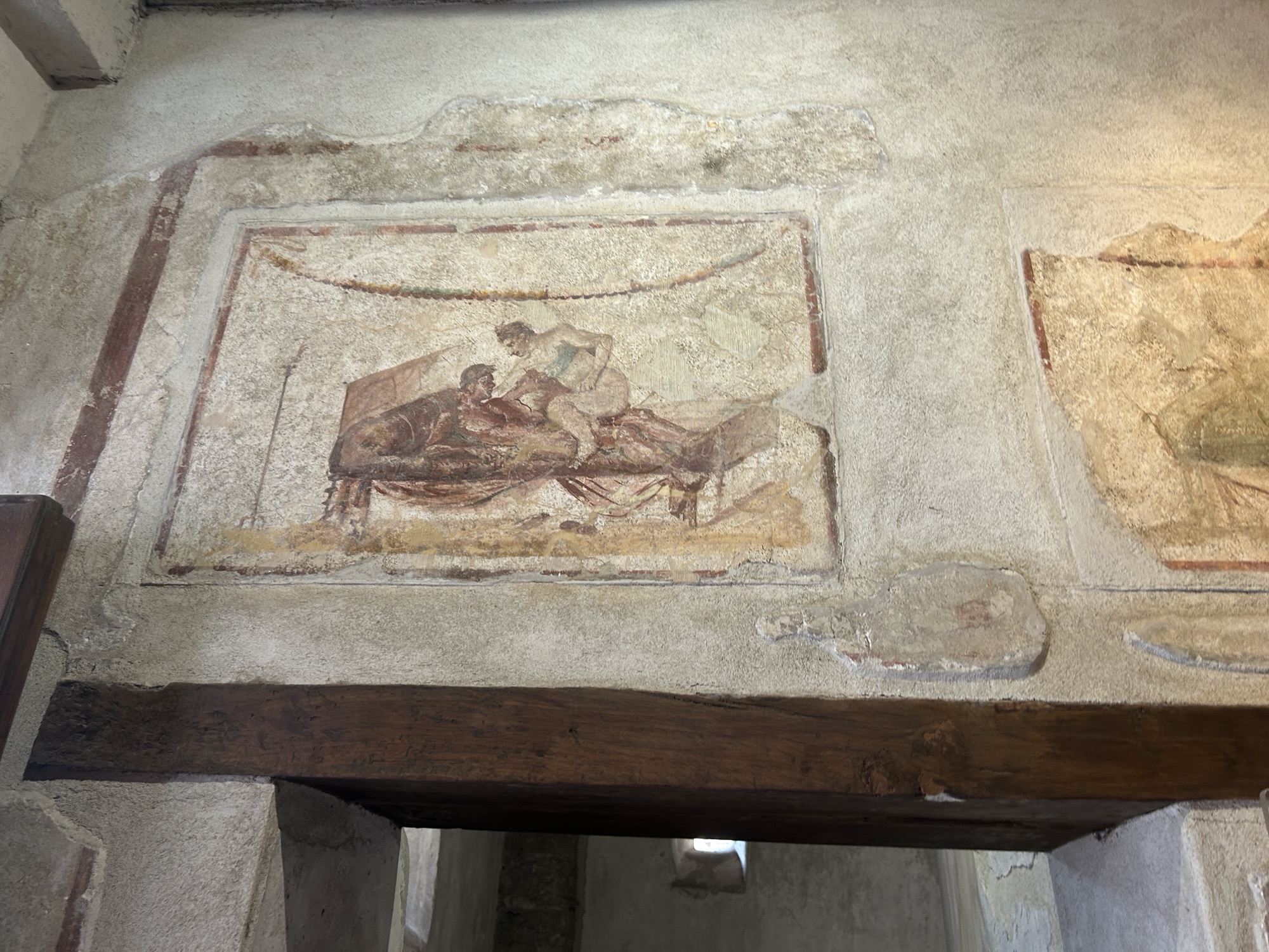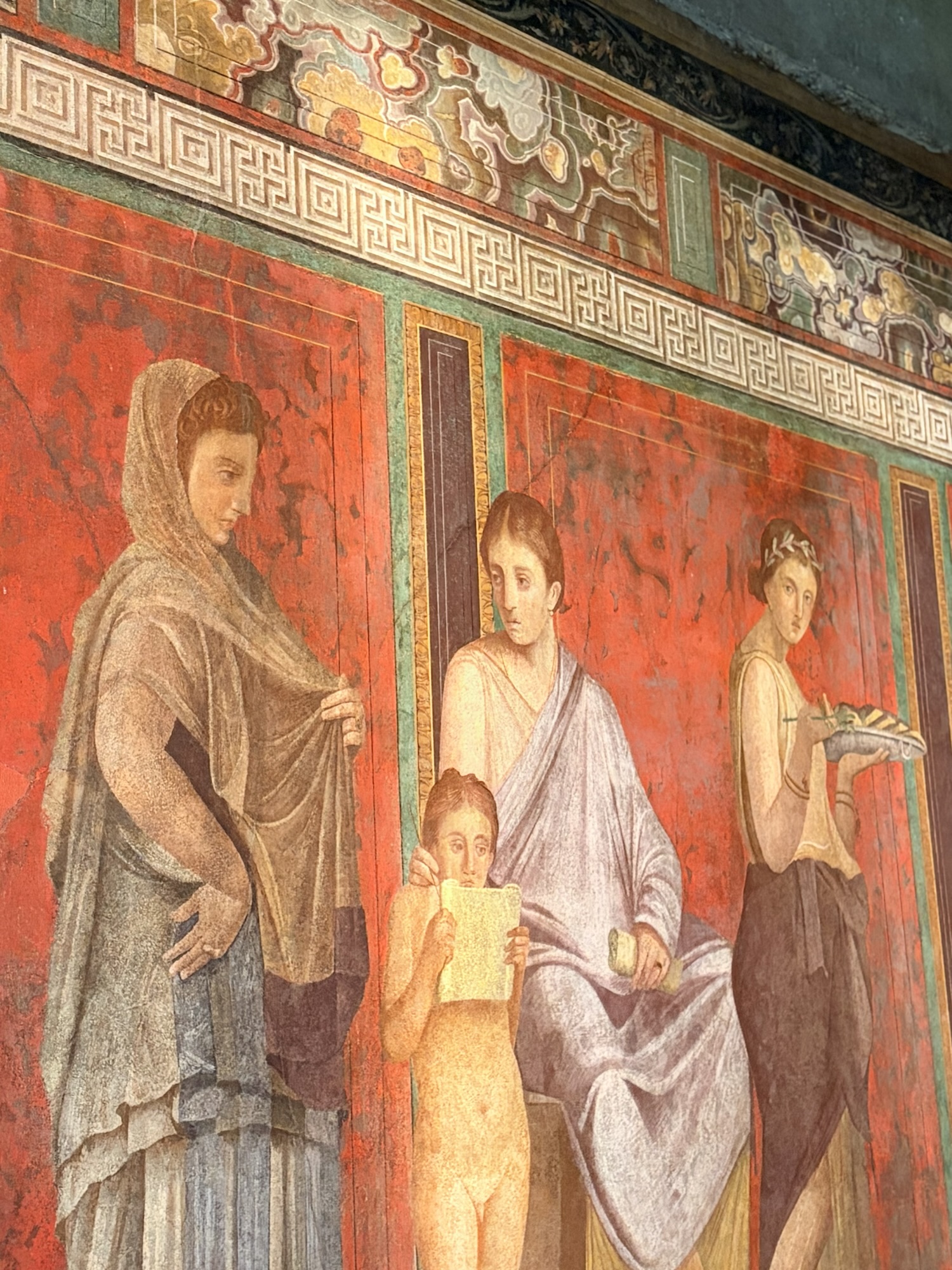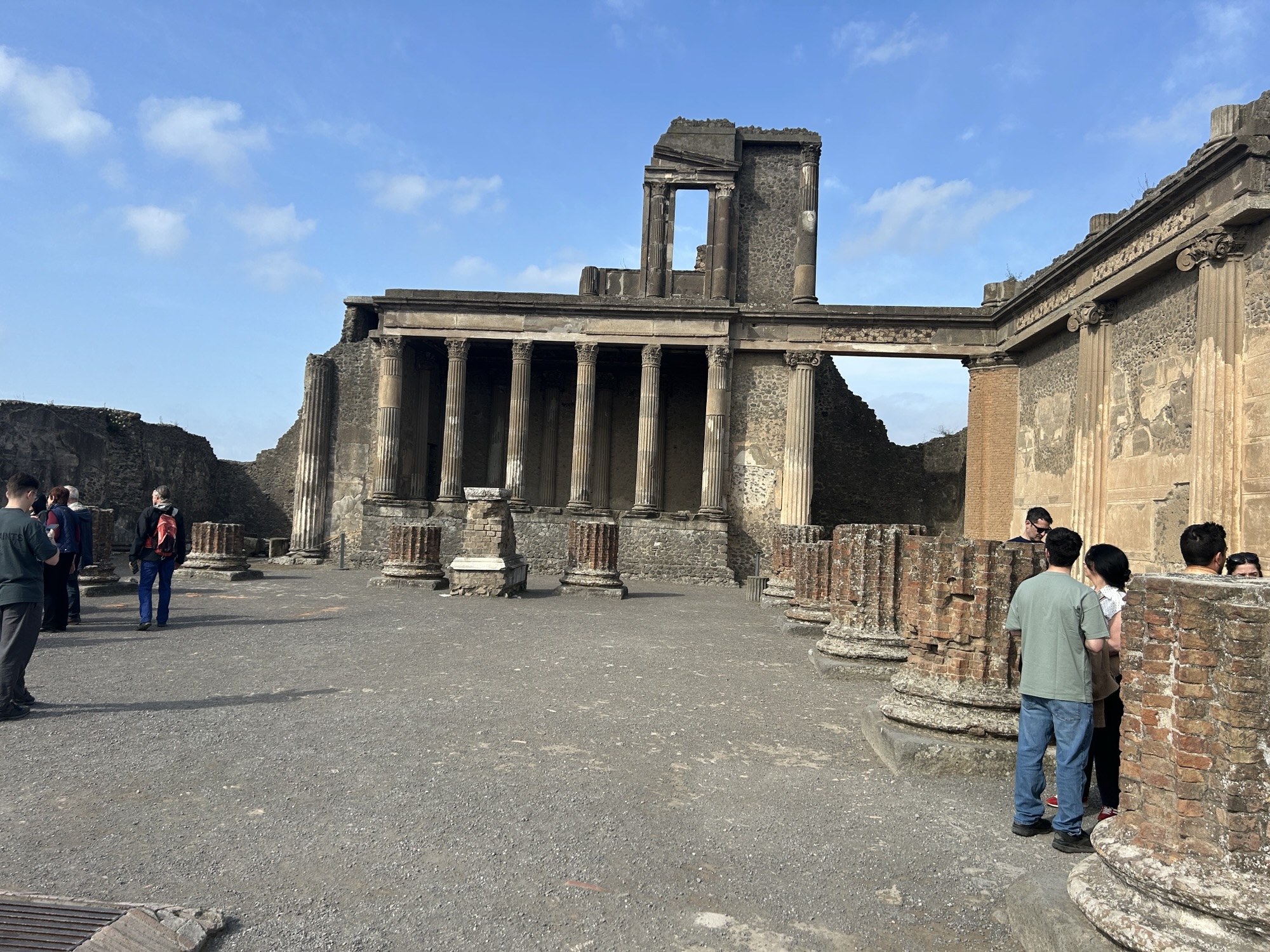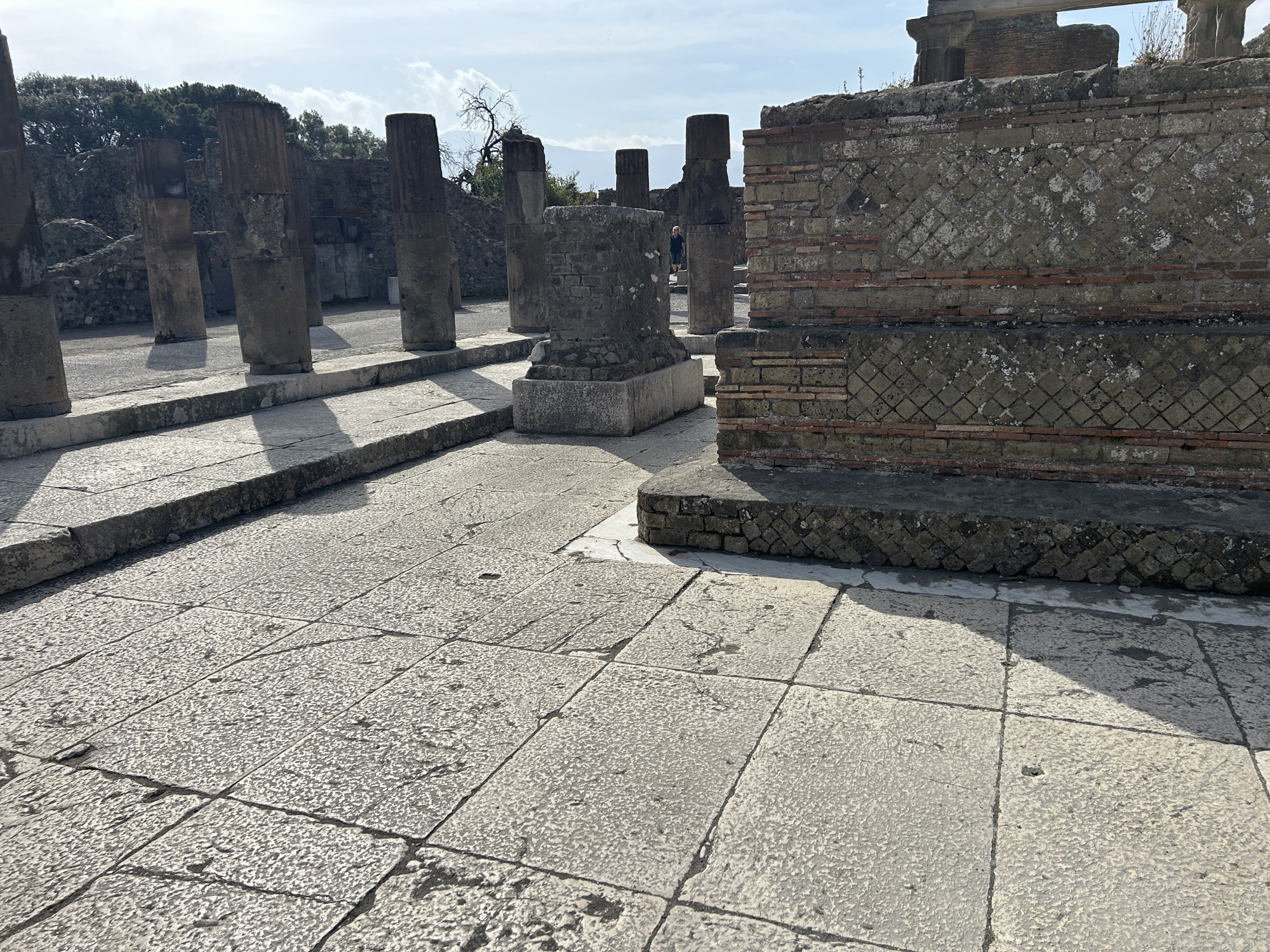What was most remarkable to me is how much archeologists know about the life in Pompeii. An example is the identification of political life and even which houses politicians/officials lived in. If there’s a bench outside next to the entrance, it was there for clients of the official to sit waiting for an appointment. The purchase of votes was legal, so officials and aspiring officials provided favors or services in return for the client’s support. A particular house we were able to walk through (usually closed to the public but open occasionally to protect the interior frescoes) has what looks like a bench in front (a large rectangular stone) but archeologists know it was part of a street repair that had been moved out of the way. Speaking of which, the eruption was in 79AD, following a severe earthquake in 62AD. Repairs from the significant earthquake damage were still underway when Vesuvius erupted. Think of the wrangling over repairs and expenses, then boom.