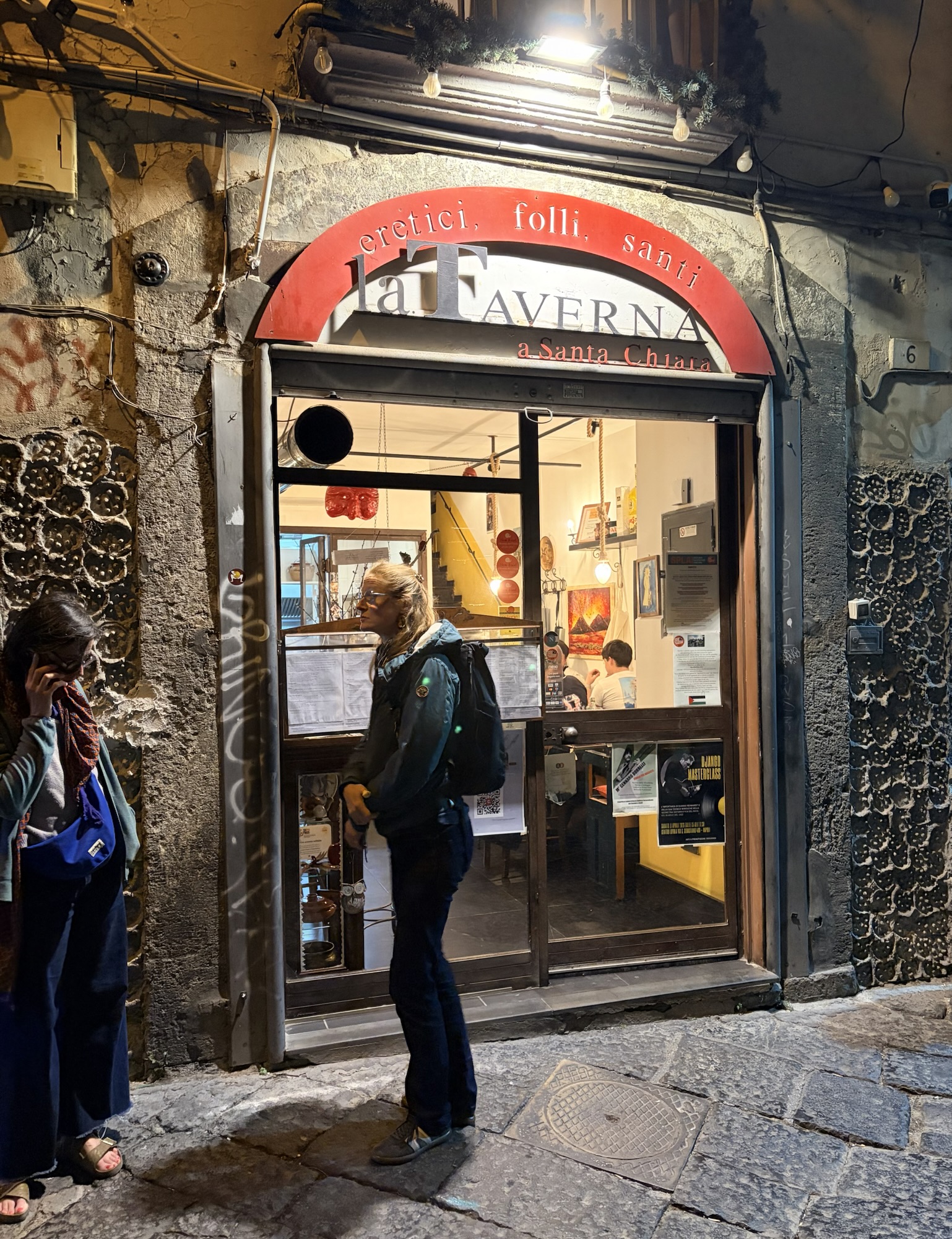 We still had time to lie down for a bit before our dinner reservation at la Taverna a Santa Chiara, which was so good. A tiny place where we watched the owners turn away walk-ins with “Maybe after 9?” We ate cheese and bread and shared an order of the local pasta and potatoes (see picture) which I must make at home it was so yummy. We walked back to Gioia Toledo and collapsed. What a day.