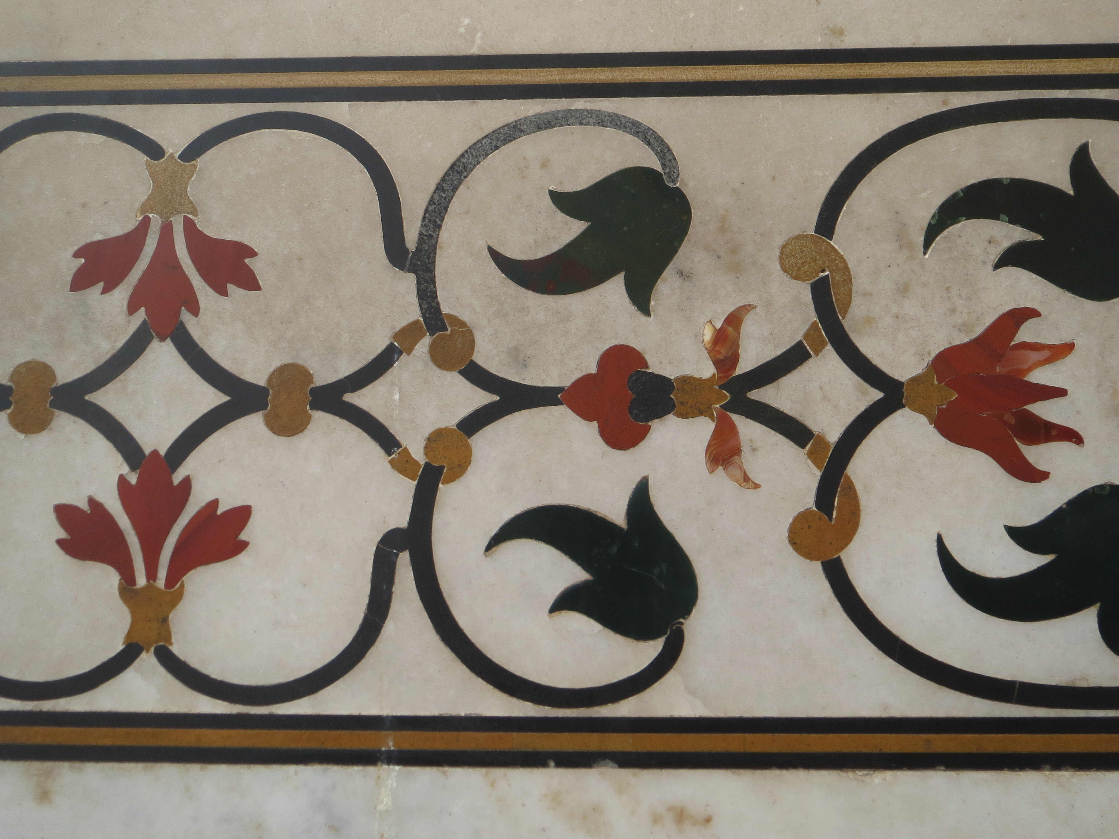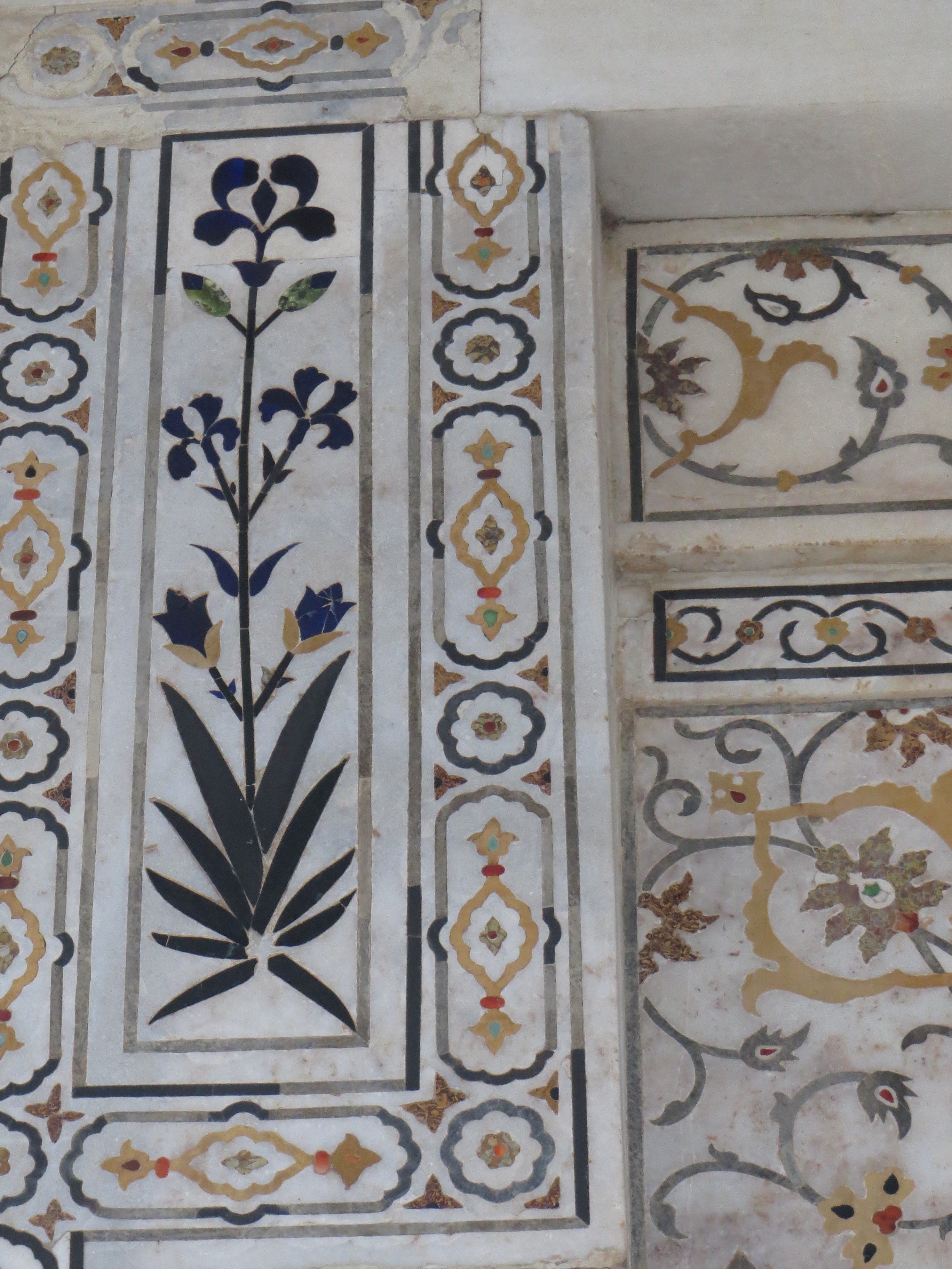 The inlaid decorations, and they are everywhere, have such a happy, light feel to them, and many of the botanical representations are identifiable–iris, rose, lily, and many others.