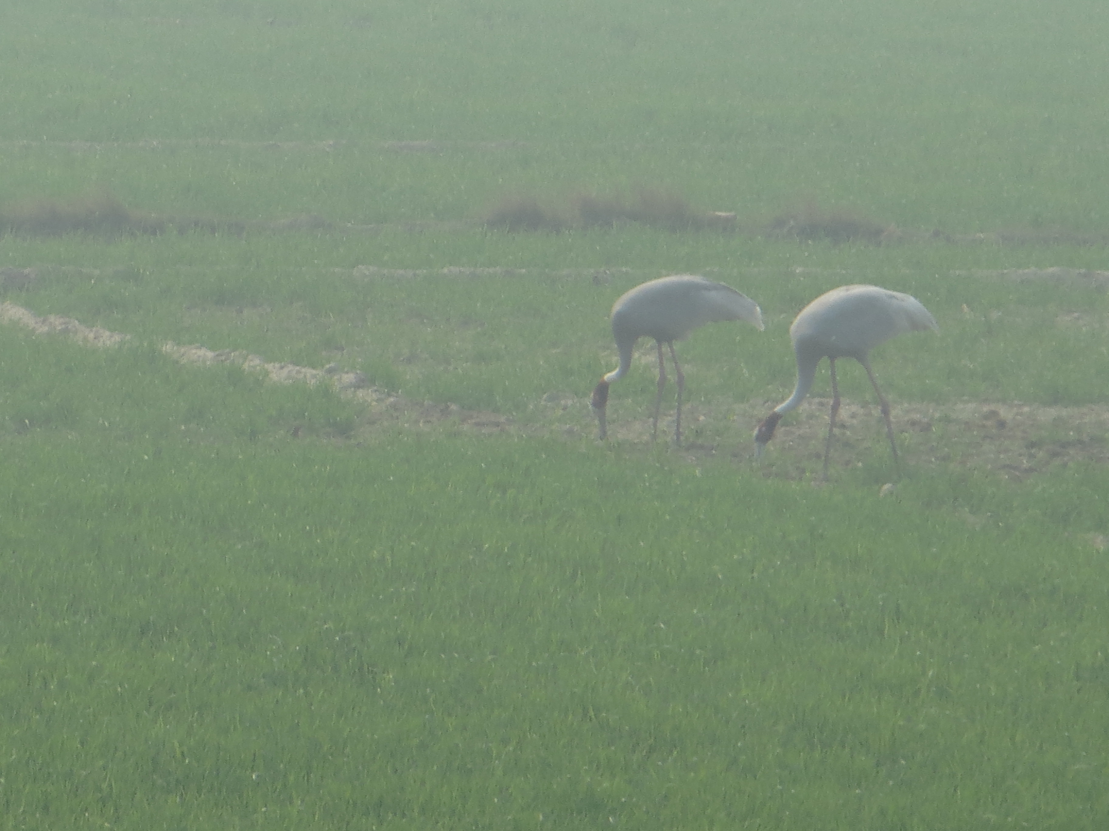 We left Agra to return to Delhi, a 3 hour or so drive along a private, elevated highway. Most of the countryside is endless green farms of wheat, mostly, and overcome by the sights of Agra it was a restful trip with reading and dozing for all. Suddenly our driver pulled to the side to point out wildlife in the distance–huge storks (below) and, a few moments later, blue bulls, which were difficult to photograph but they have horse heads (luckily I had my binoculars) and bullish bodies.