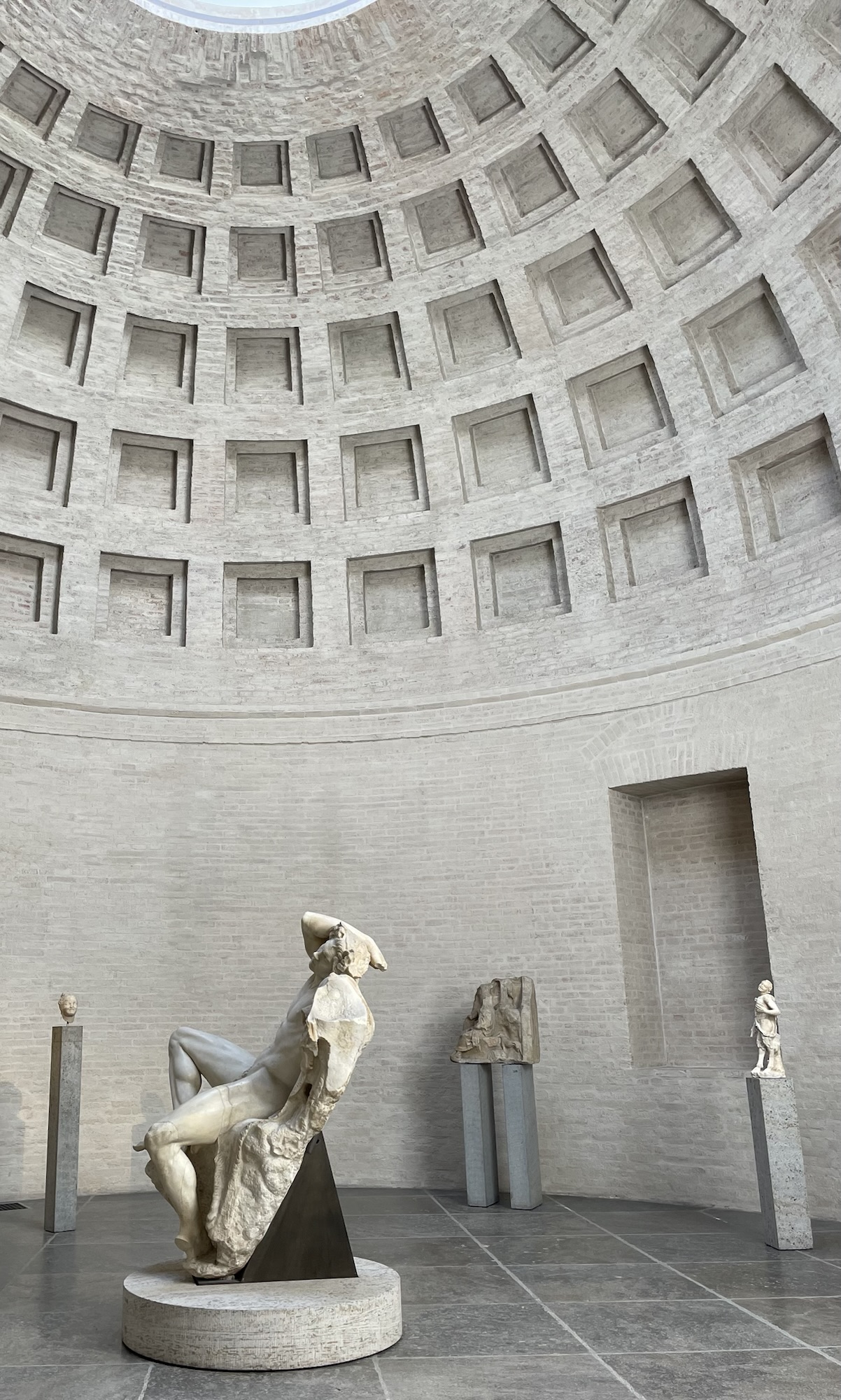 First, the building itself is impressive, with tall, domed, coffered ceilings, giant windows, and plenty of room between items to wander and circle them. We noticed everywhere in Europe the art is rarely behind glass or in cases–you can get right up close and really see the work. For these ancient sculptures this made our viewing experience feel personal–you can walk around a piece, no barriers, and it frankly was hard not to reach out and touch them (we did NOT).