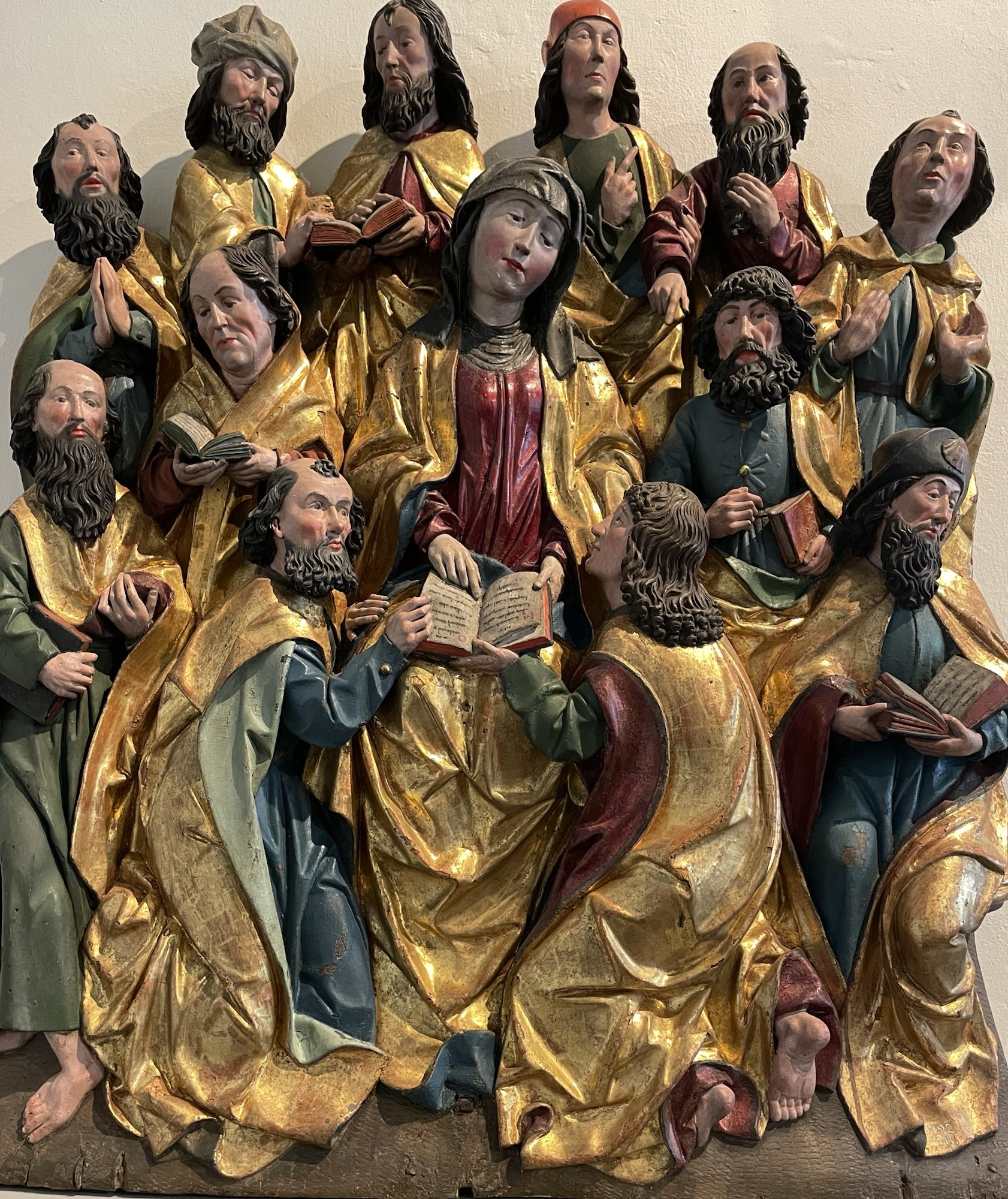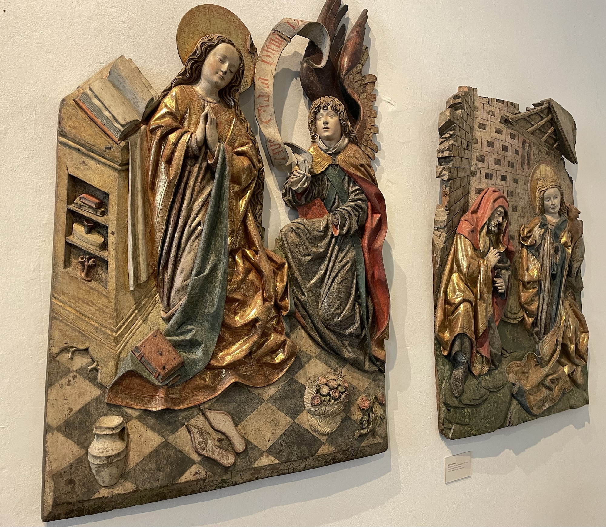 It’s a wow, of course, but with a bit of the Victoria and Albert Museum (London) flavor. Why have just oh, five or so cases of ivory sculptures when you could have an enormous room of them? Why have just a few select examples of nativity figures when you can have eight or nine rooms of them? Just how many suites of armor can one admire? So there’s that aspect of this enormous place–but also some truly gaspingly beautiful wooden sculptures as well as enormous models of Munich and a few other places. We were admiring these as we have in other museums when I noticed in the descriptive sign these were not, as we assumed, modern or at least 20th century models–they were from the 1500’s. Very, very cool. I’ve put the link below because it was impossible to get a decent photo.