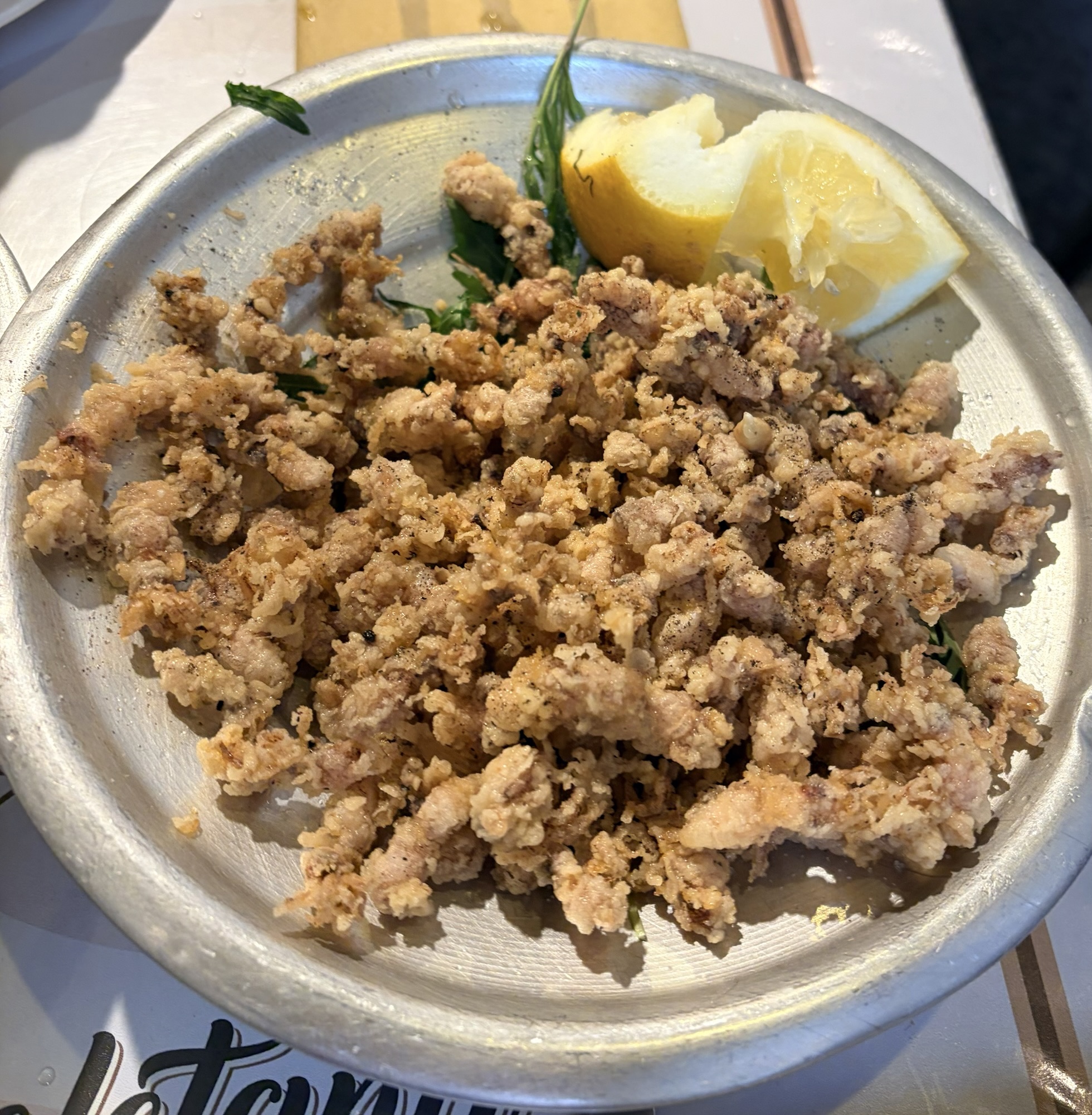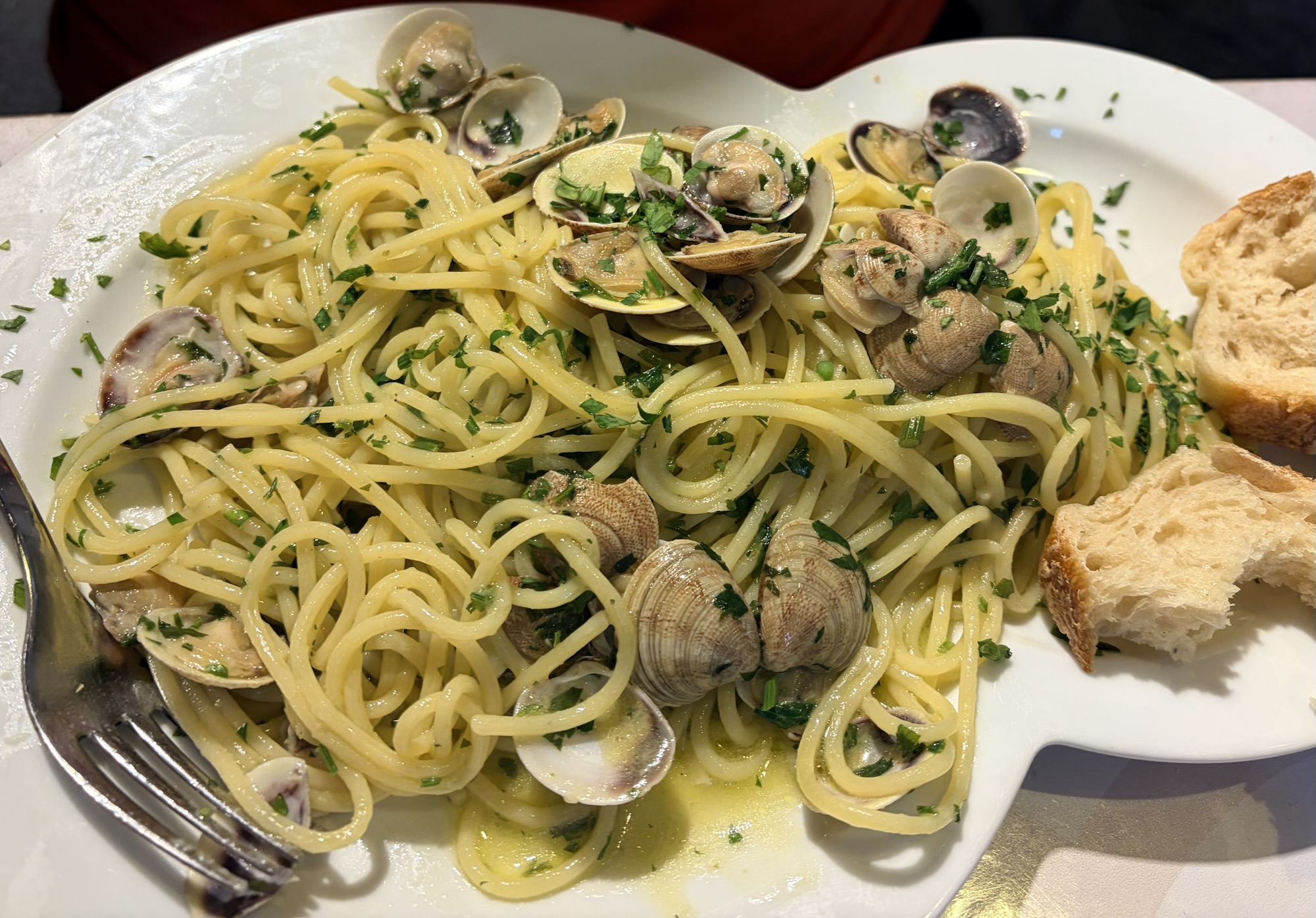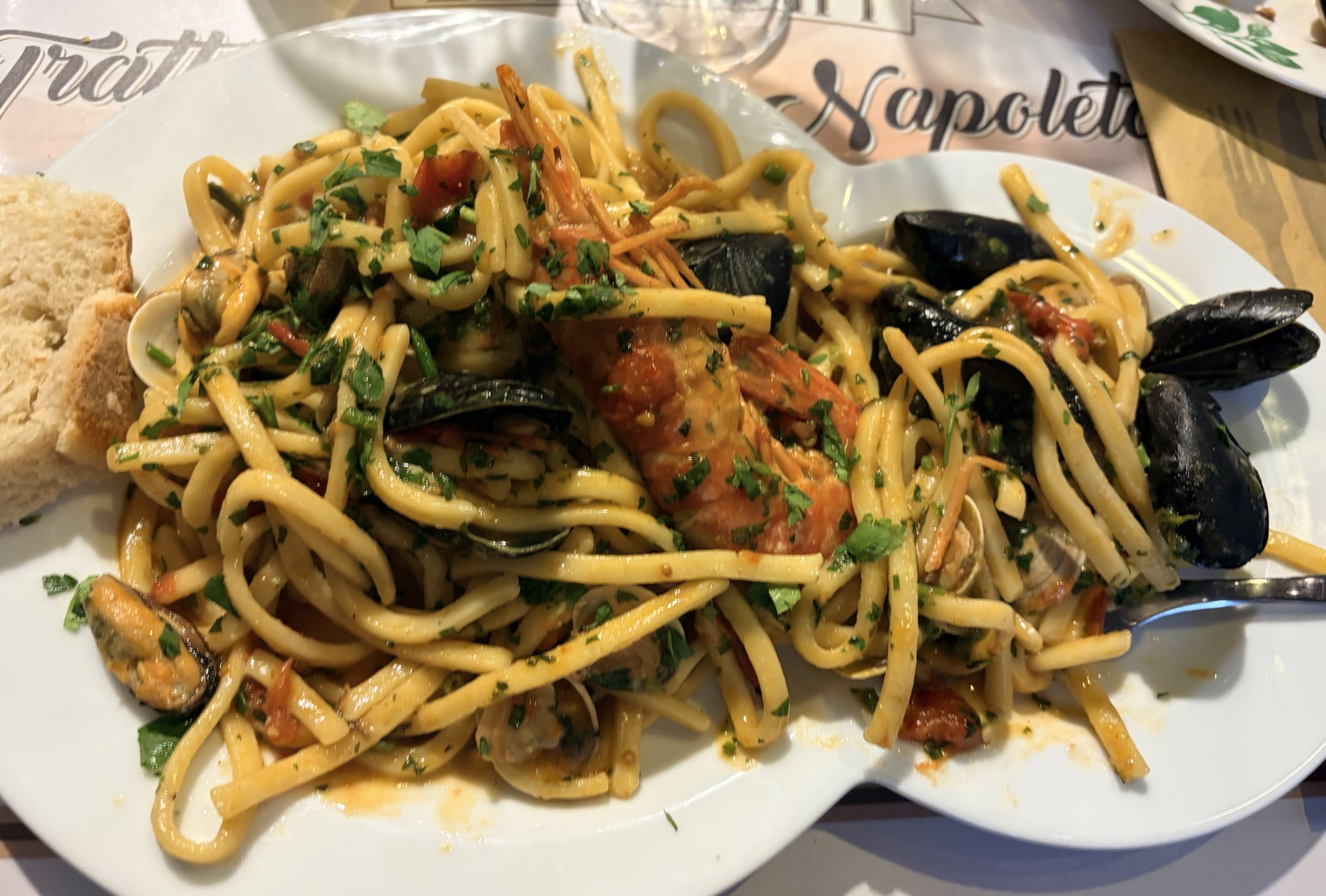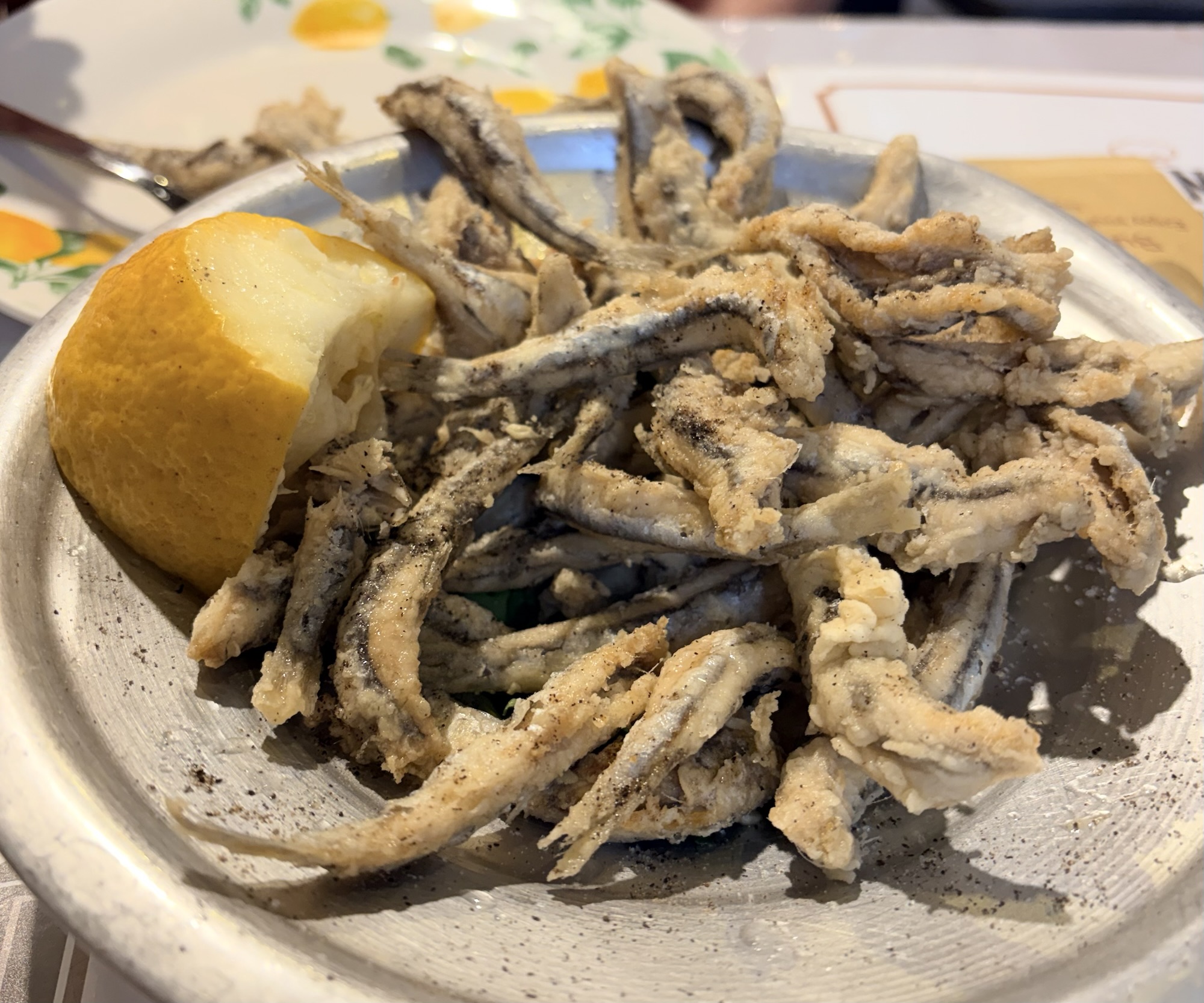We had no dinner plan so just wandered the streets behind our B&B, getting hungrier and a little confused. We let ourselves be hawked into one of the gazillion restaurants (it had pretty good reviews) and collapsed at a table on the street and ordered wine and alici fritti and calamari fritti. Delicious. Then, too tired to go looking further for a proper dinner, and a bit, uh, relaxed, we ordered pasta. It was all so good…and we toddled back to our rooms to collapse.