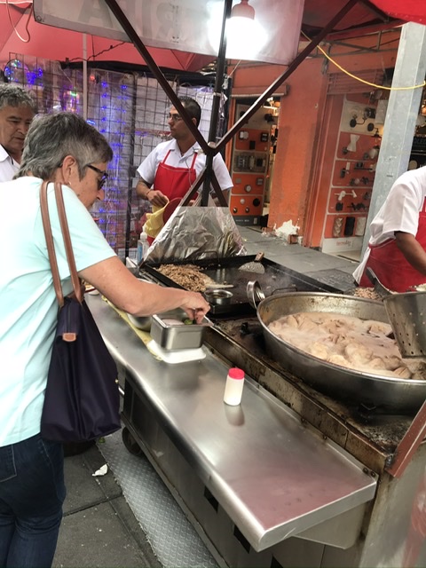 We had booked a food tour in the city of Haarlem, a very short train ride, and ever worried about making our way to unknown locations on time we were an hour plus early for the tour so stopped in a nice coffee place with wifi. Thirty minutes in an American sounding guy sat next to us, a talker but an entertaining one. He was born in Indiana but had emigrated to Canada years ago and was now a Canadian citizen. Show off. We had a fun time mostly listening to him, getting in words as we could, as we explored traveling, being Canadian, his time on vacation in Haarlem (which I recommend highly…stay there and take day trips into Amsterdam) , and so forth. It passed the time and then we walked a few more blocks to the food tour.