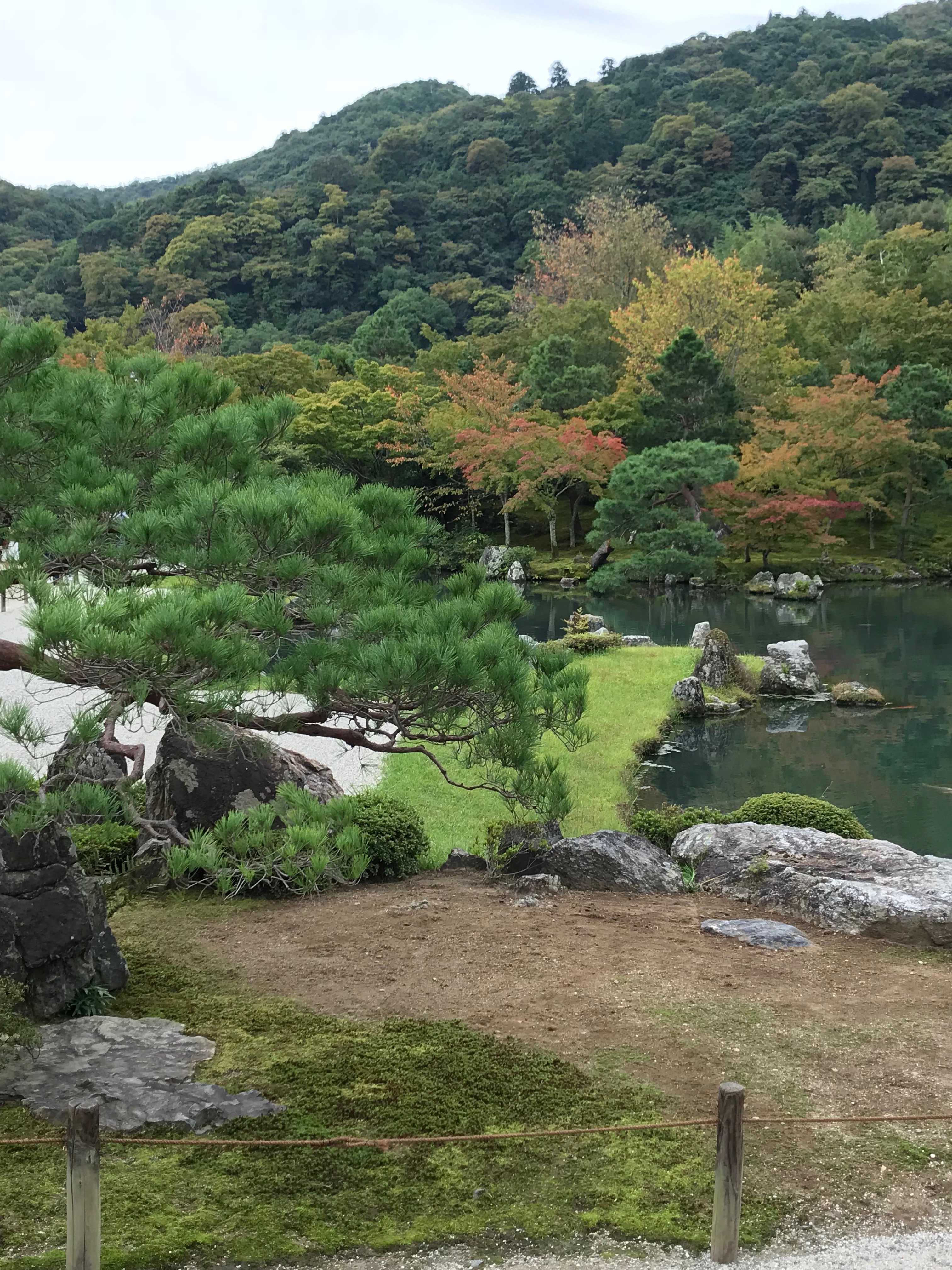 Searching for a final day’s excursion we decided to give Arashiyama another try. I swore I had seen enough temples for a lifetime, that they were all beginning to run together, but we didn’t have a better idea so hopped on the train and 15 minutes later were there. After reinterpreting the tourist map near the station, which of course had North pointing down, we started in on a recommended walking tour. The first stop was Tenryo-ji and paid the $8 to see both the temple and the garden, an extremely famous and popular spot that was, for an off season Saturday, full of tourists. Let’s see why it is so popular: