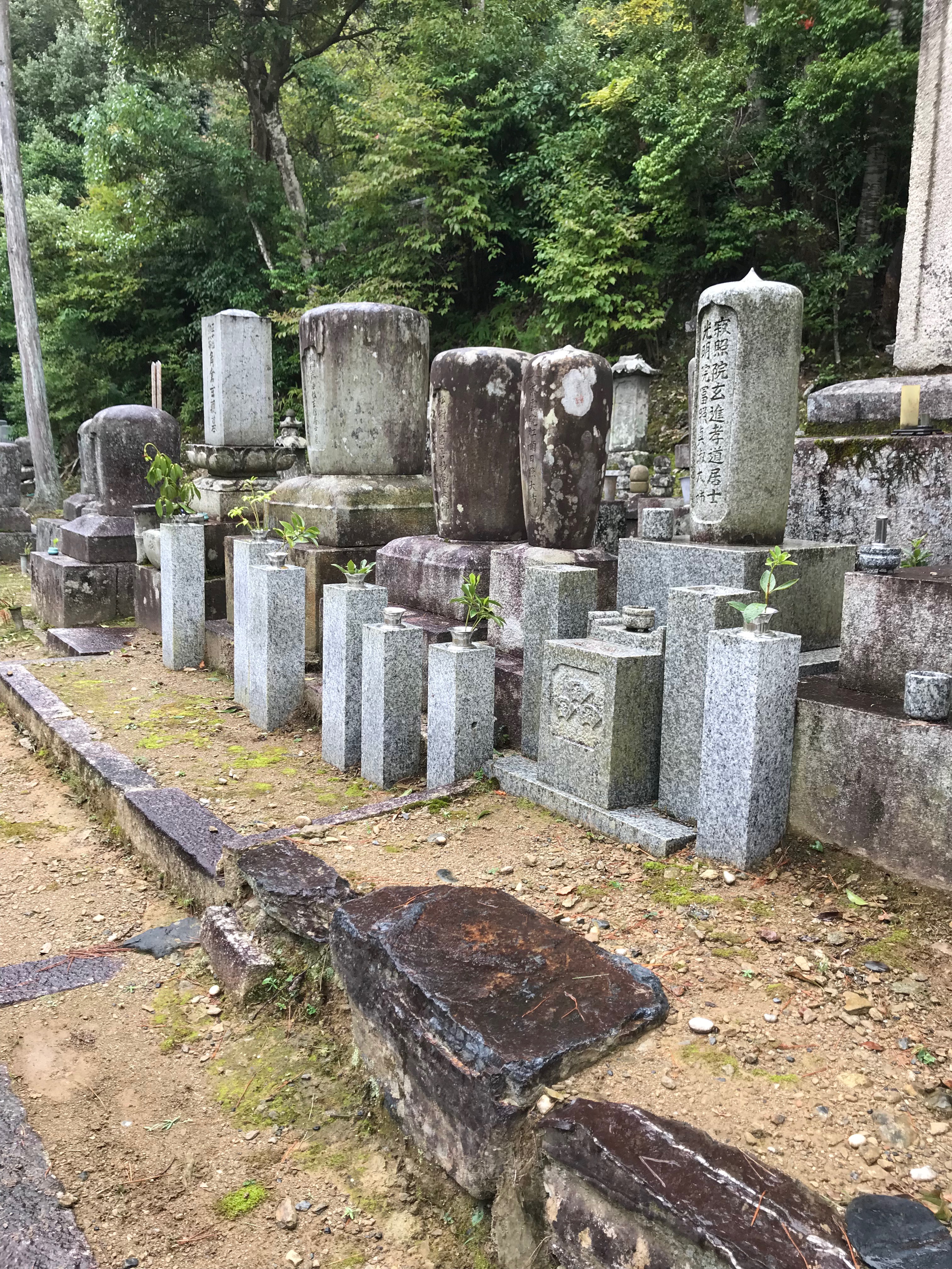 We walked slowly up and up, peering into a few temples but moving on until we arrived at Jojakko-ji. This one made my top 5 or 6 of the trip. So quiet, with beautiful views back toward the city of Kyoto, a truly gorgeous main temple with stunning gold Buddhas, a mysterious-feeling cemetery and a bonus as we left (see video below the photos).