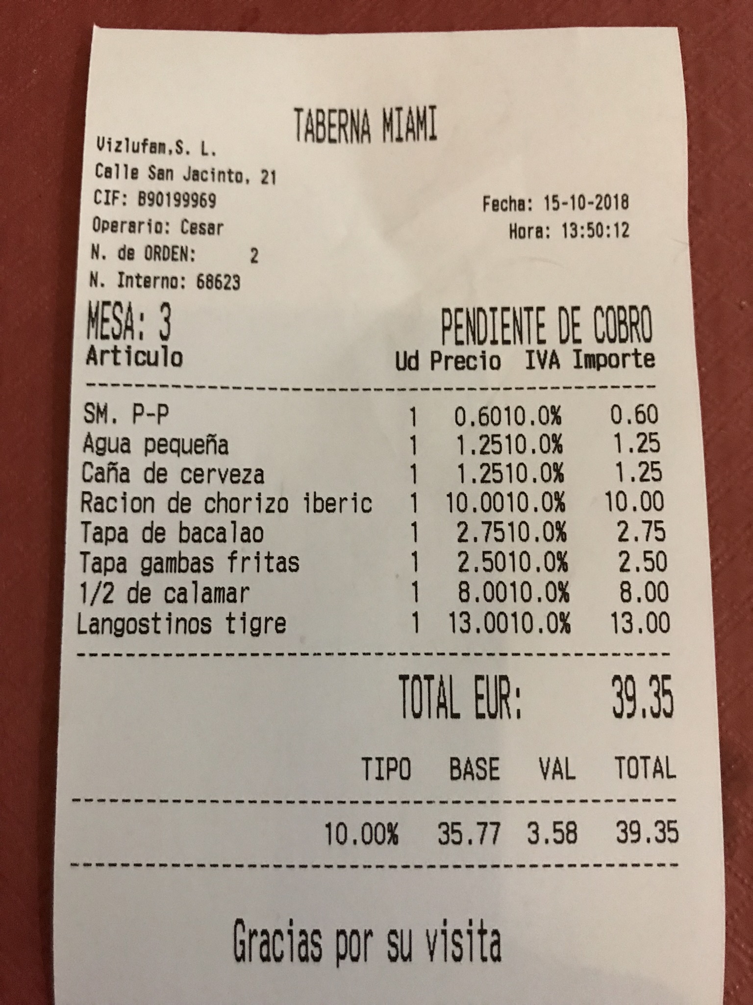 For supper we decided to try El Sur, which was maybe a 25 minute walk away into a neighborhood we’d not visited before. We finished off a lovely bottle of wine–“3 Tempranillos” which is a blend of, what do you know, three tempranillo grapes all from the Duero valley but from 3 different elevations. It was delicious. A nice, homey place, nothing at all fancy, and we ate our fill, went home, and packed.