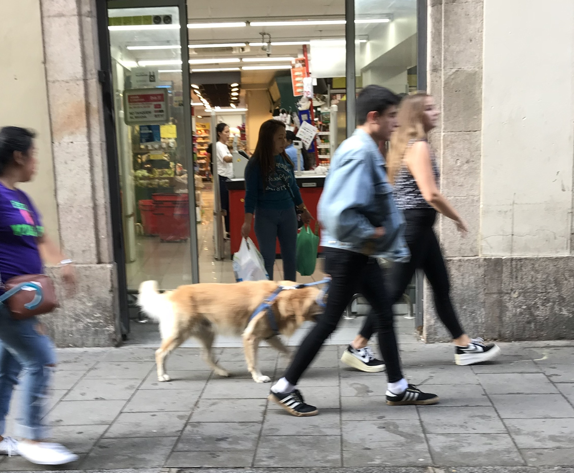 Our destination stop was Sol, smack in the middle of madhouse Plaza Del Sol. One of those heaven-sent ticket machine aides helped us buy the card and explained we could put two riders’ worth of trips on one (like the lovely T-10 card we used in Barcelona. Unlike our mistaken albeit inexpensive purchase of 2 rides to the airport on one card in Porto and had to buy a second card…which, when we got to the Porto airport we found there was no turnstyle exit anyway. Whatever.) For all the complicated instructions we’d had from our Airbnb host re looking for particular routes, it turned out there is just a single metro train running through the Madrid train terminal, and in about 8 minutes we were coming up the escalator into crazy Plaza Del Sol.