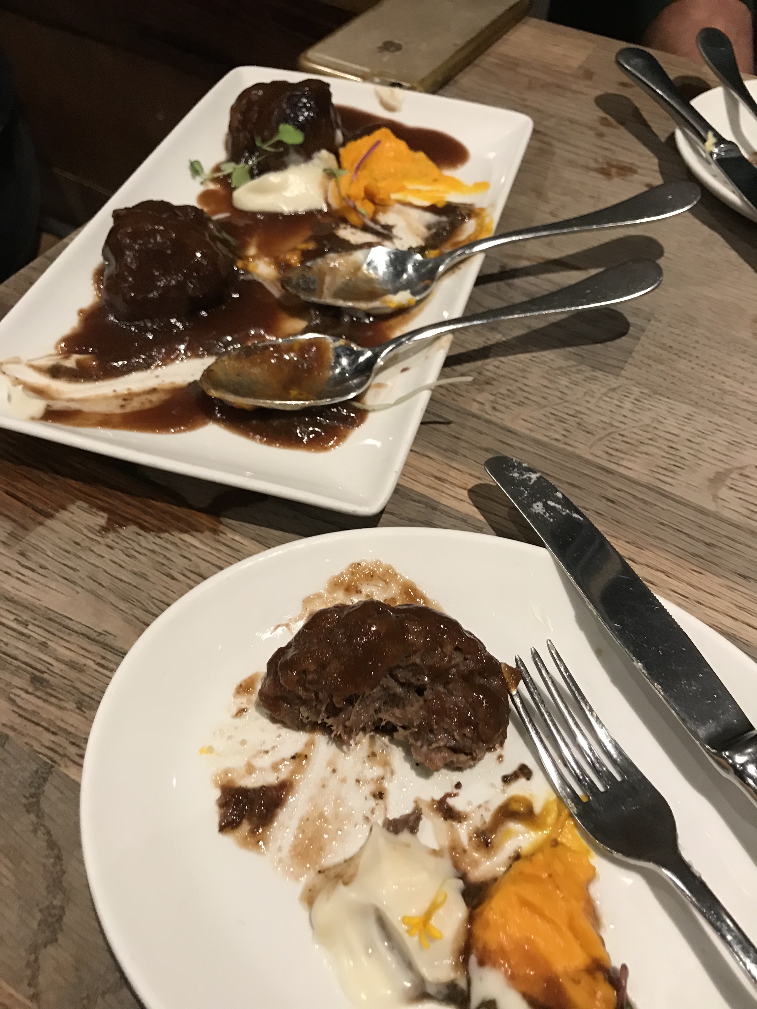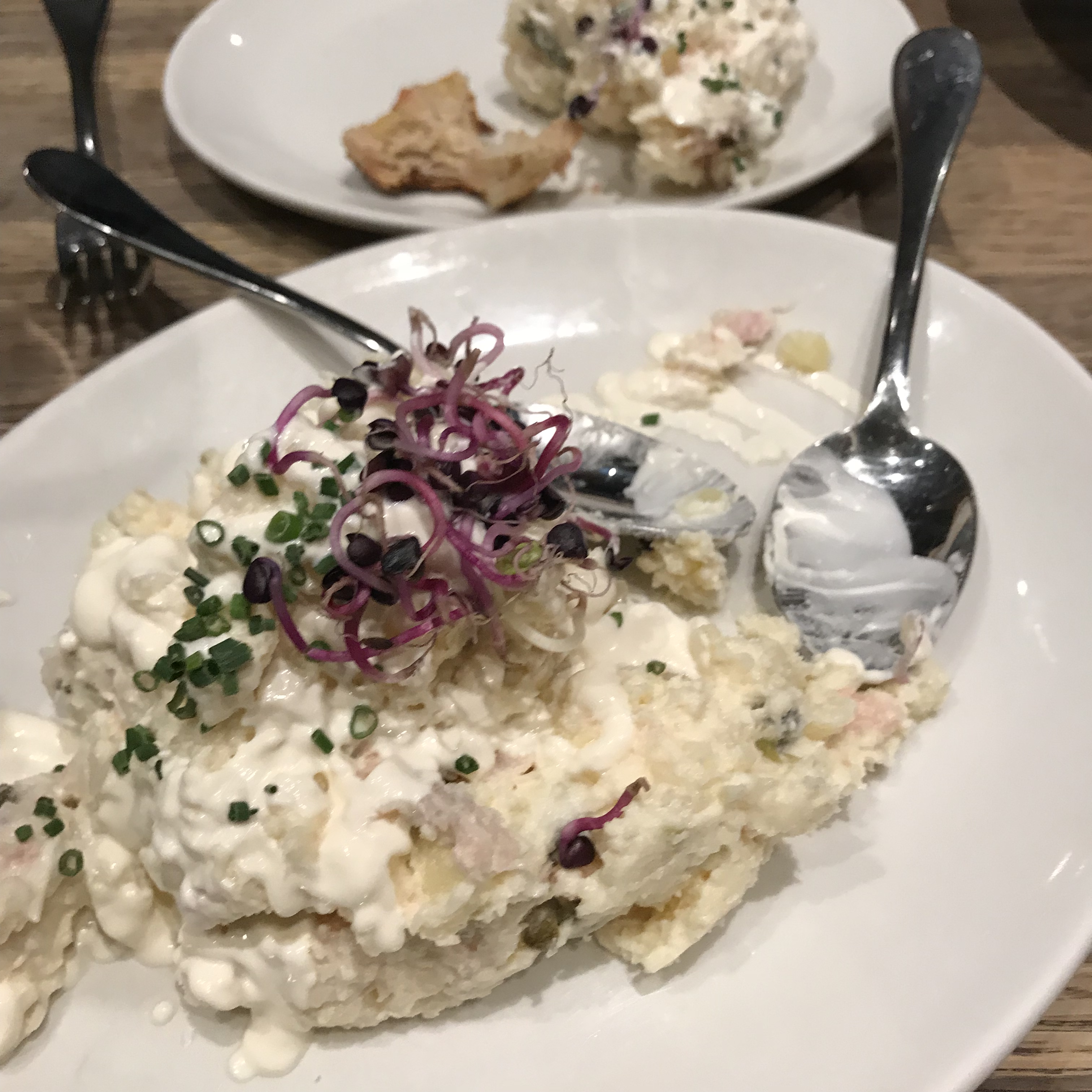 I had one question-what was tripe Madrid style? It means cooked with chorizo and blood sausage. David ate the sausage and I tried my best to finish the delicious, meltingly tender tripe but it was altogether too much…half portion of course. David, with a bit of help from me, finished a half portion which was most generous of anchovies in vinagre, what we call in the US white anchovies. So good. And a small order of patatas bravas to round out the flavors. Staggered home to bed as we had a busy Sunday planned.