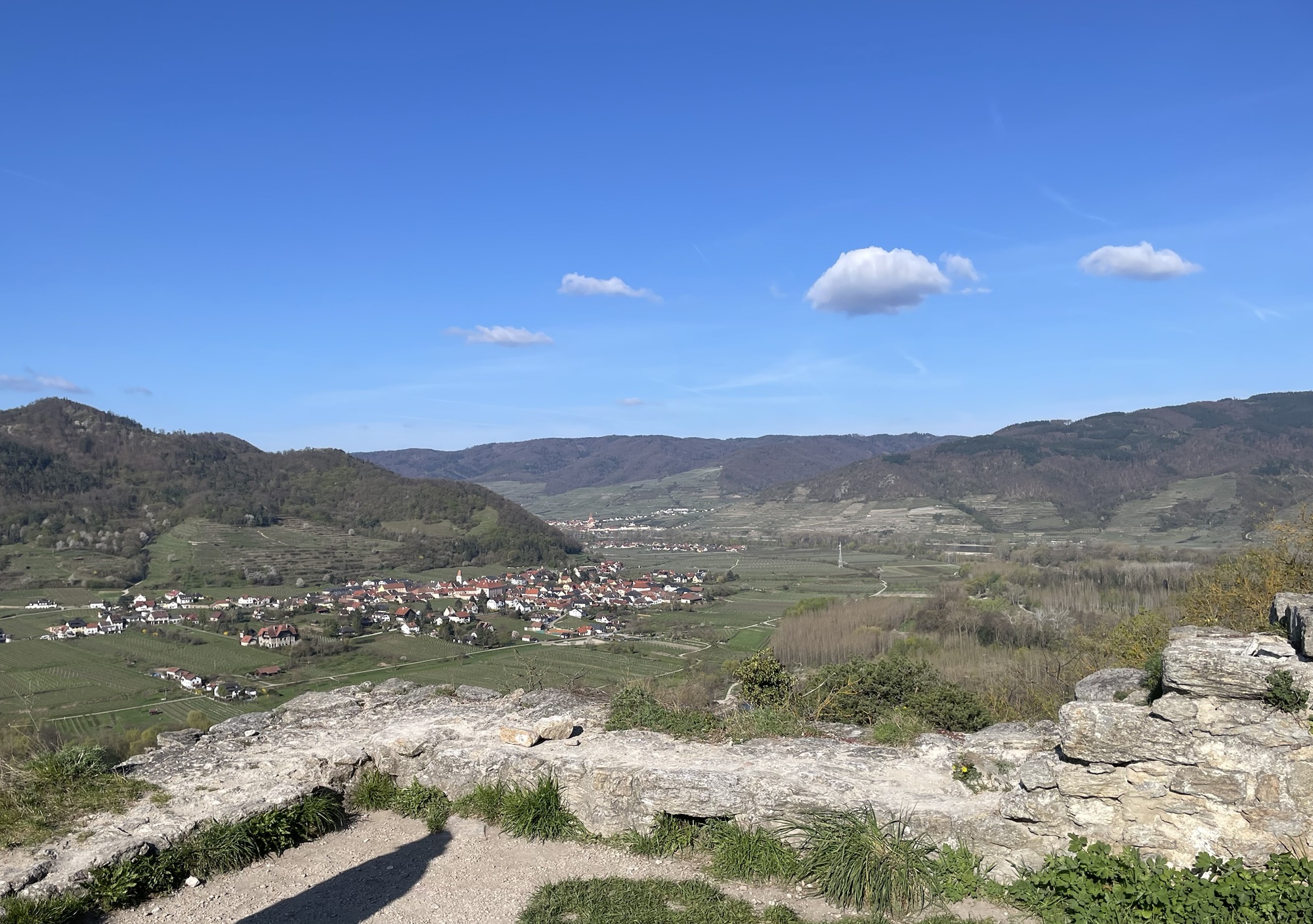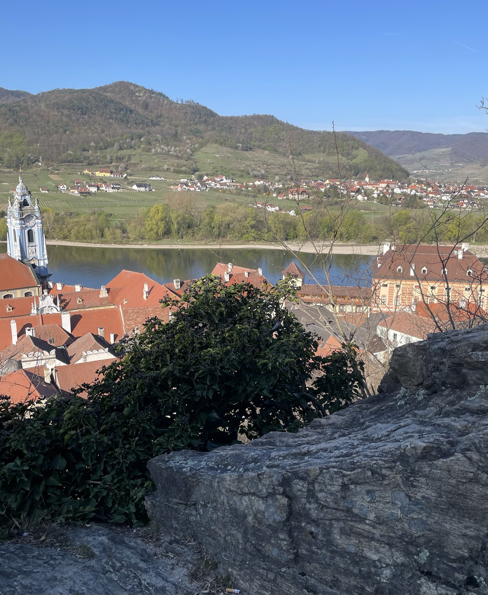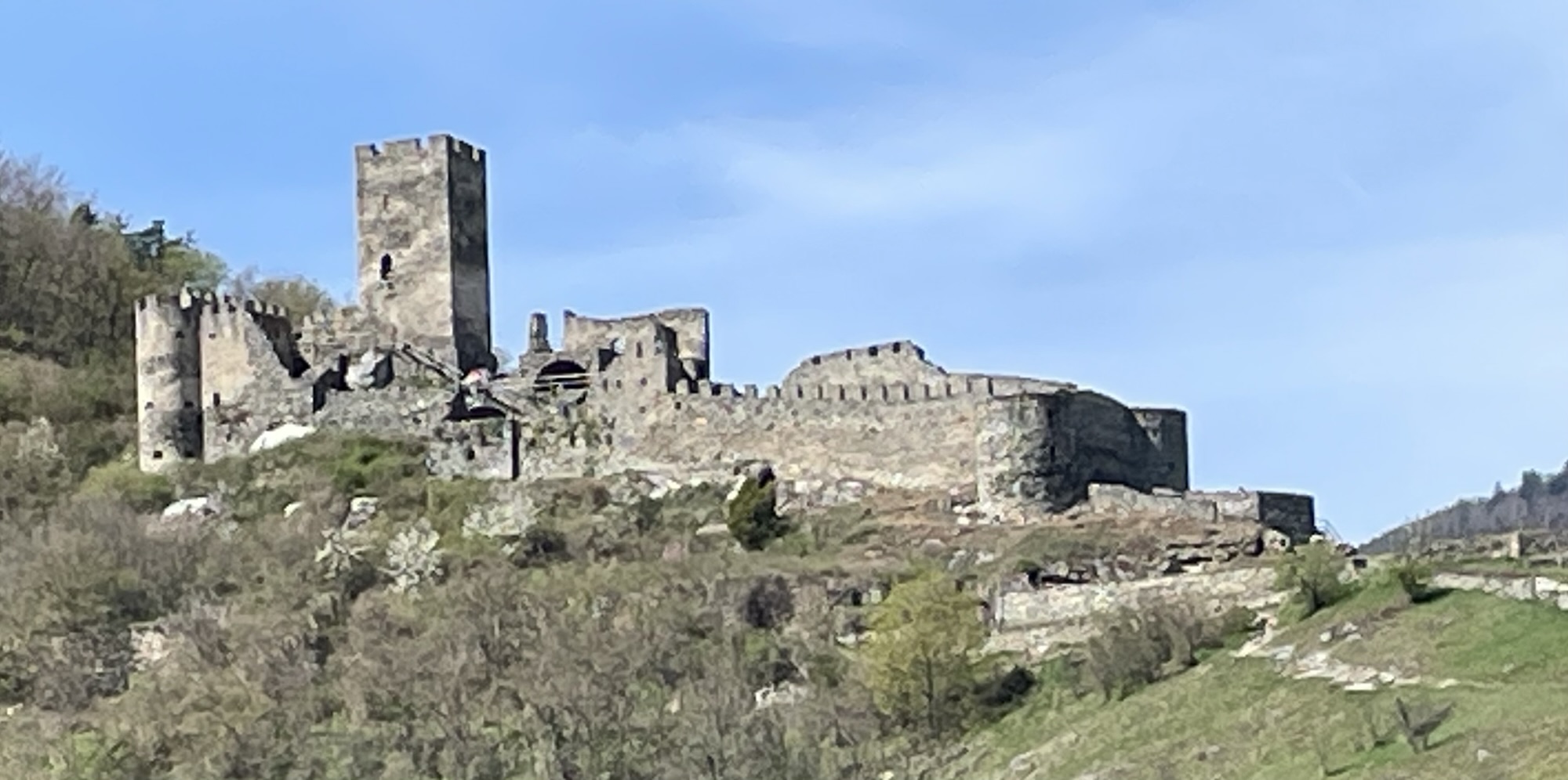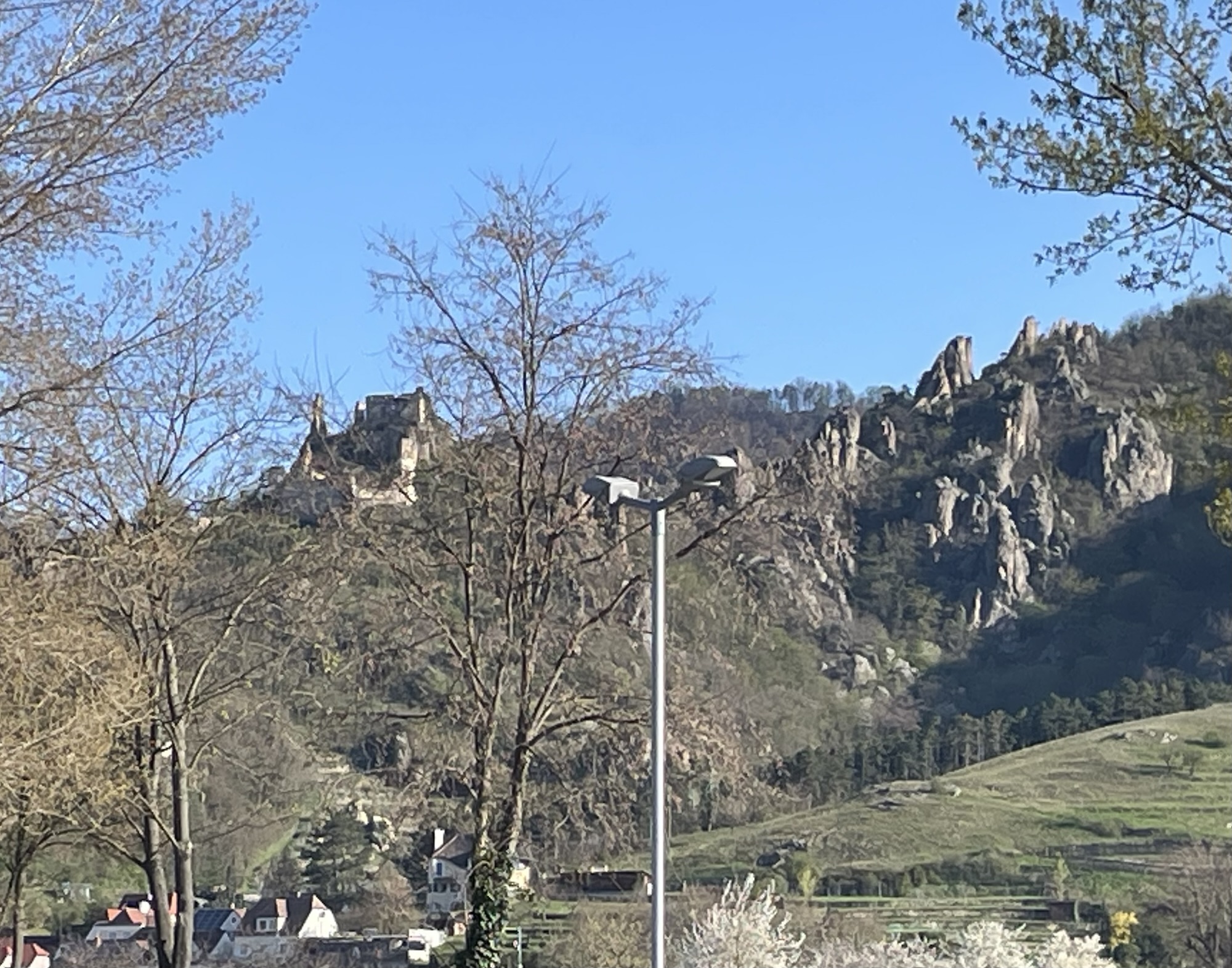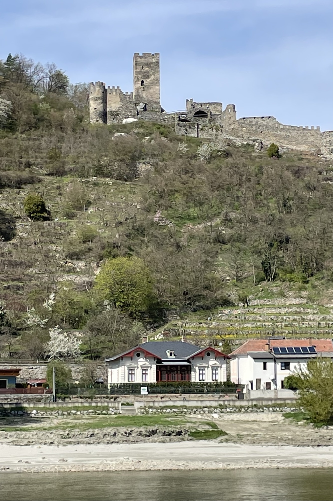 We woke up Saturday, April 12, in Durnstein, a ridiculously picturesque Austrian town. We had signed up for the hike to the castle ruins, which seemed, when we chose it months ago, so doable. That was before we entered the lazy period that started when we got on this boat. As we looked up at the destination we gulped, but, committed, we laced up our shoes and joined our little group.
