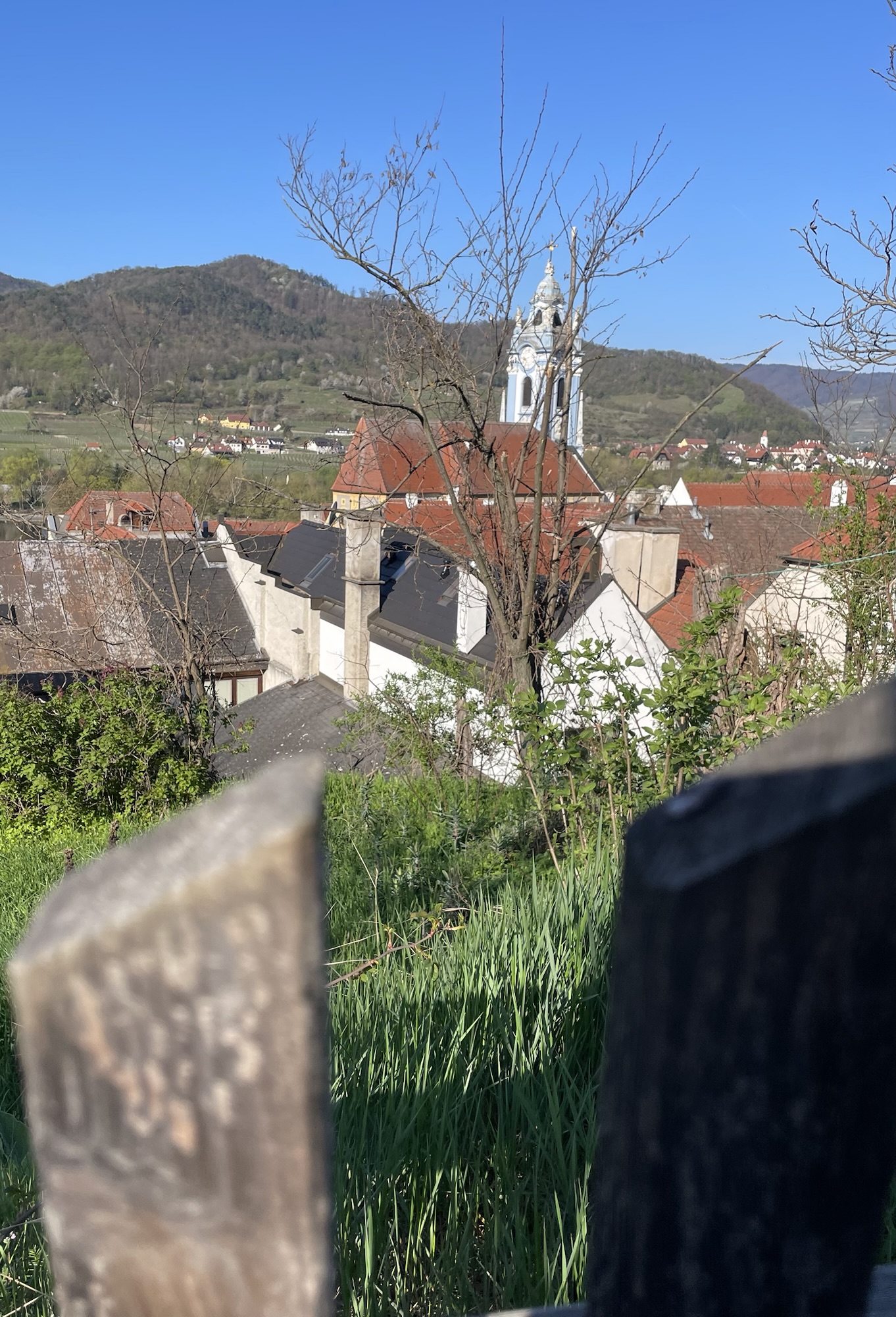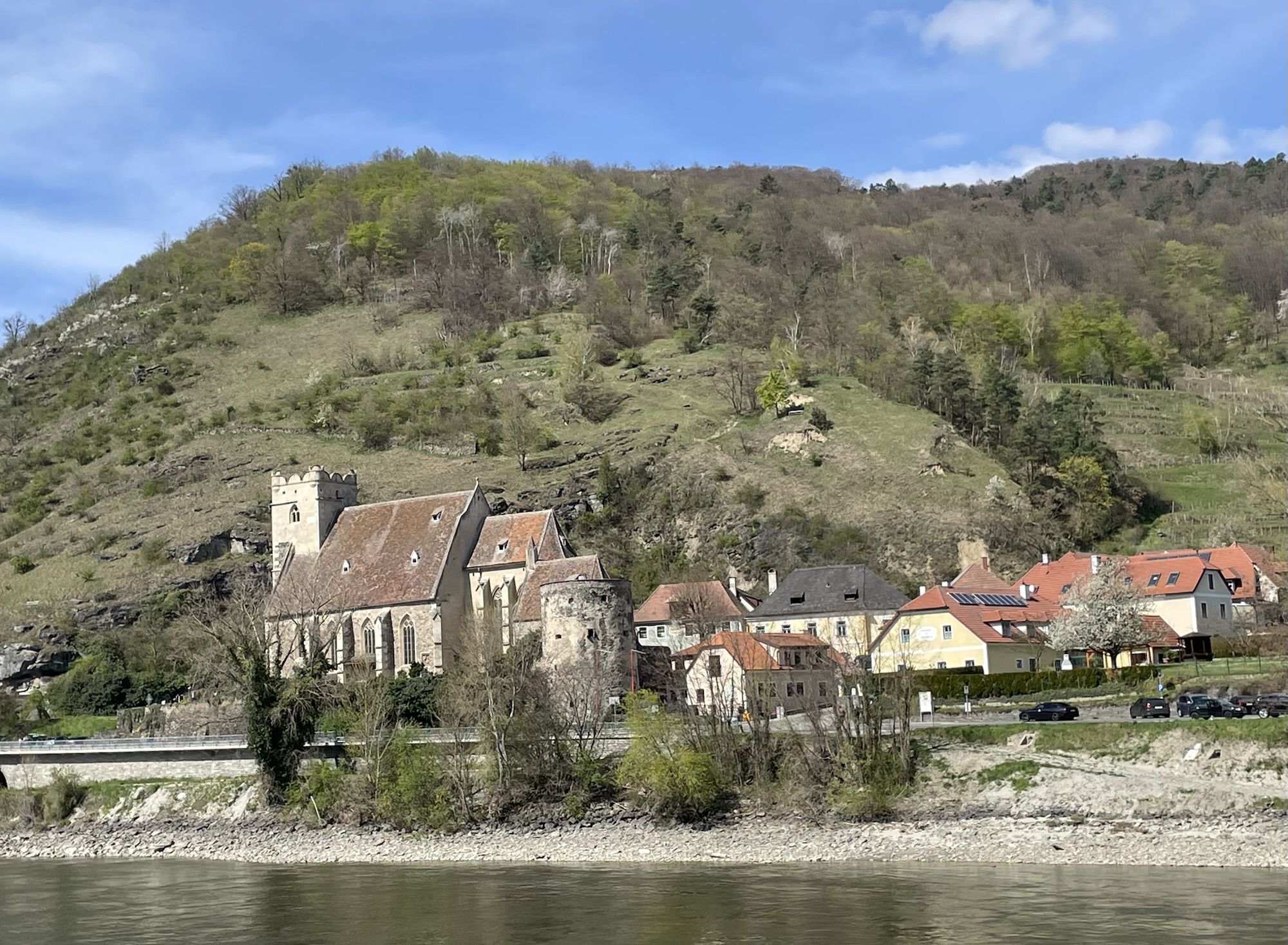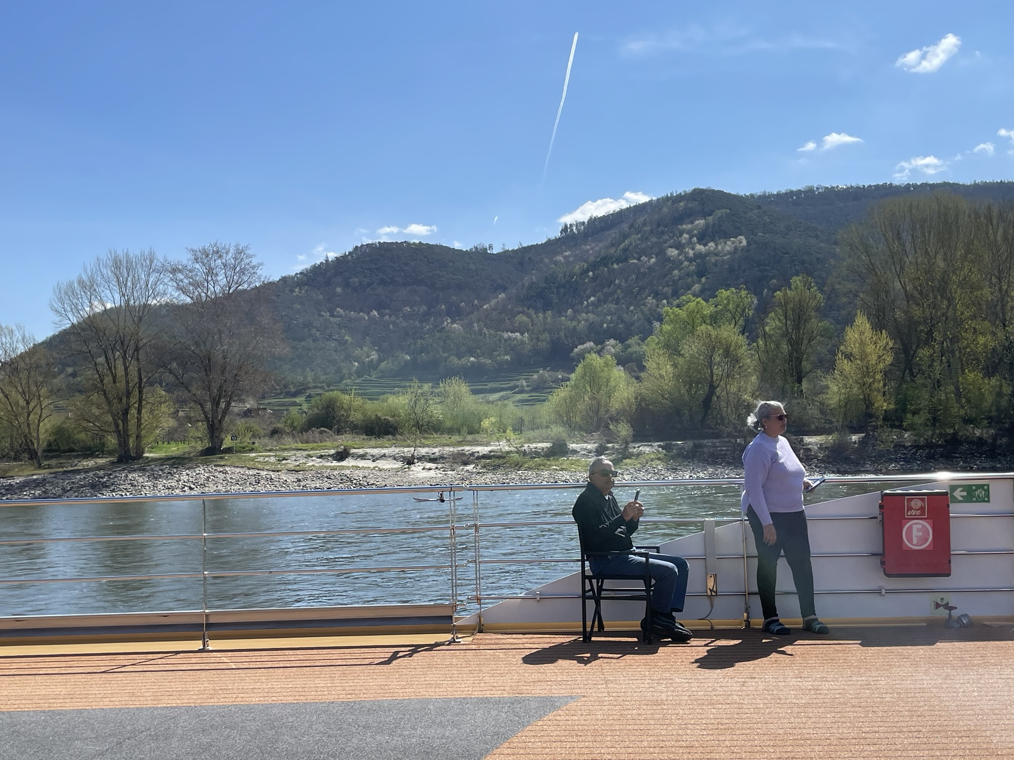 The boat left at 10:45 and many of us went up top to see the Wachau Valley. The Danube runs between steep hills, almost mountains, gorgeous and peaceful.