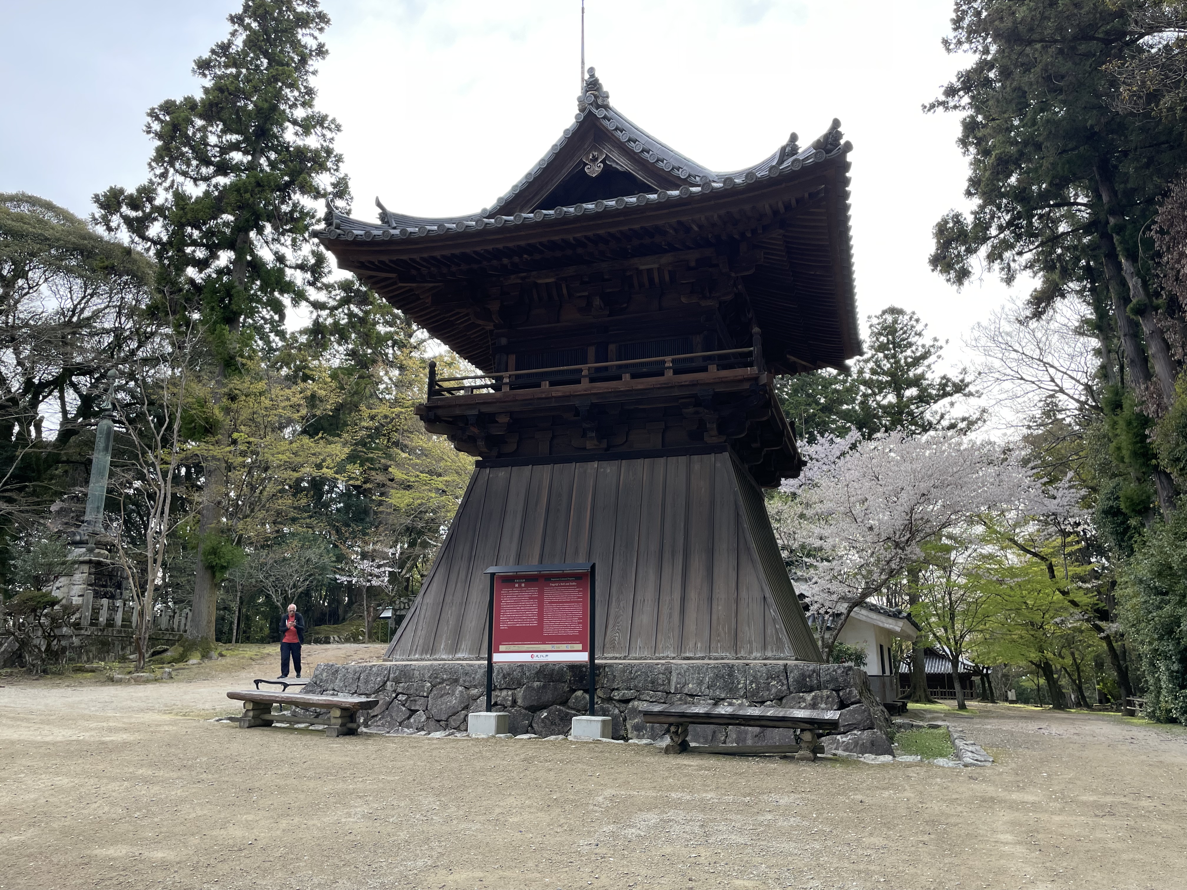 It’s difficult to describe how quiet and picturesque it is. A few lingering cherry blossoms added bits of white to the views. The stonework, dead quiet gardens, and very small temples were the opposite of Horyu-ji–no school groups, no massive buildings, no wide plazas. We spent an hour or so taking it all in, walked down the stone path and across the road, and within ten minutes were back on a bus to Kyoto proper.