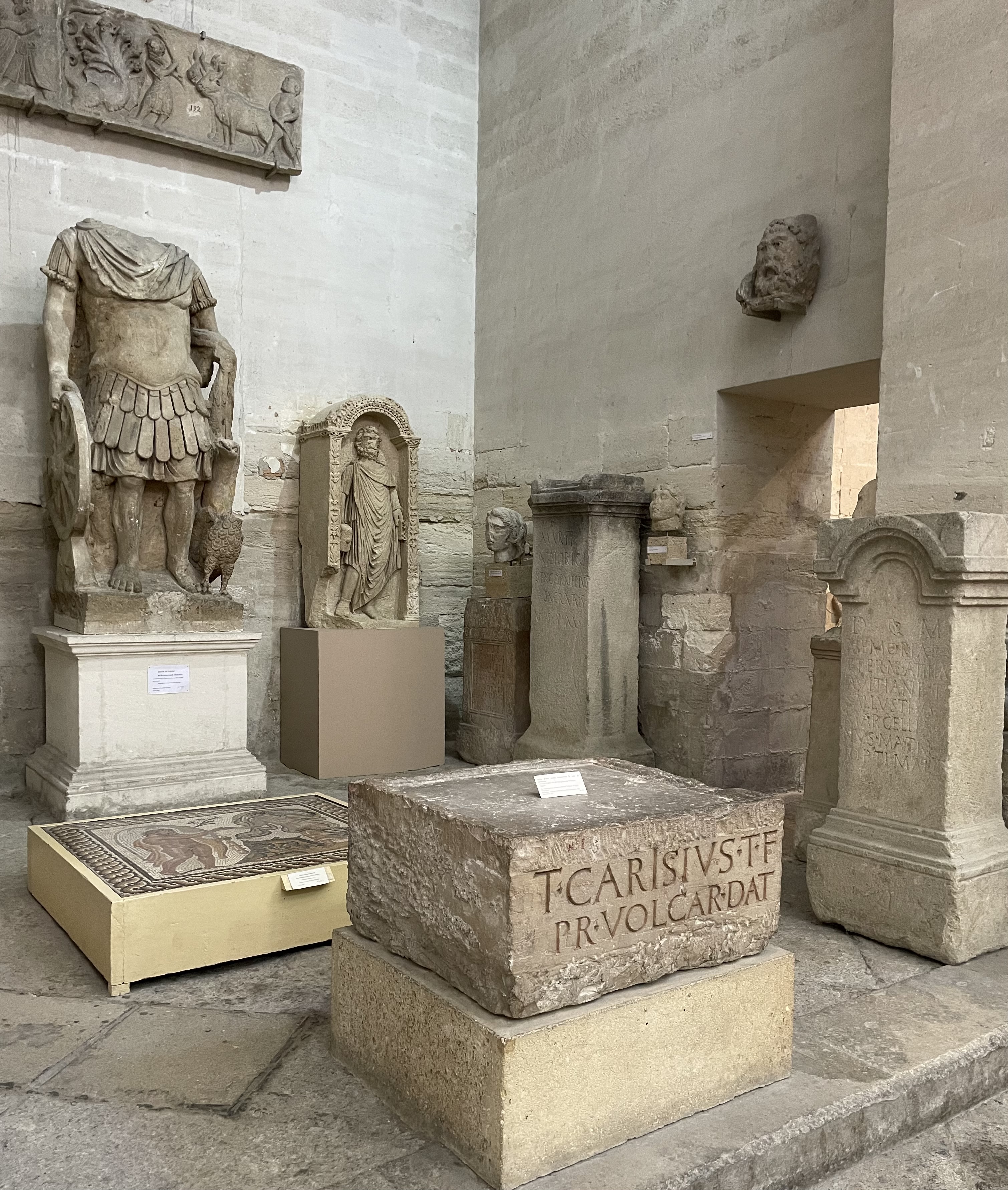 Our first day in Avignon we stopped at the Office de Tourisme and discovered there are four free museums—we visited three of them that first day. David and I are into Roman history and we had several day trips we had planned to see Roman ruins. And here we find out that there is a museum of Roman artifacts, Lapidaire Musee, a few doors from the Office de Tourisme. And free! We headed right over there and wow, what a lovely experience if you like Roman stuff.