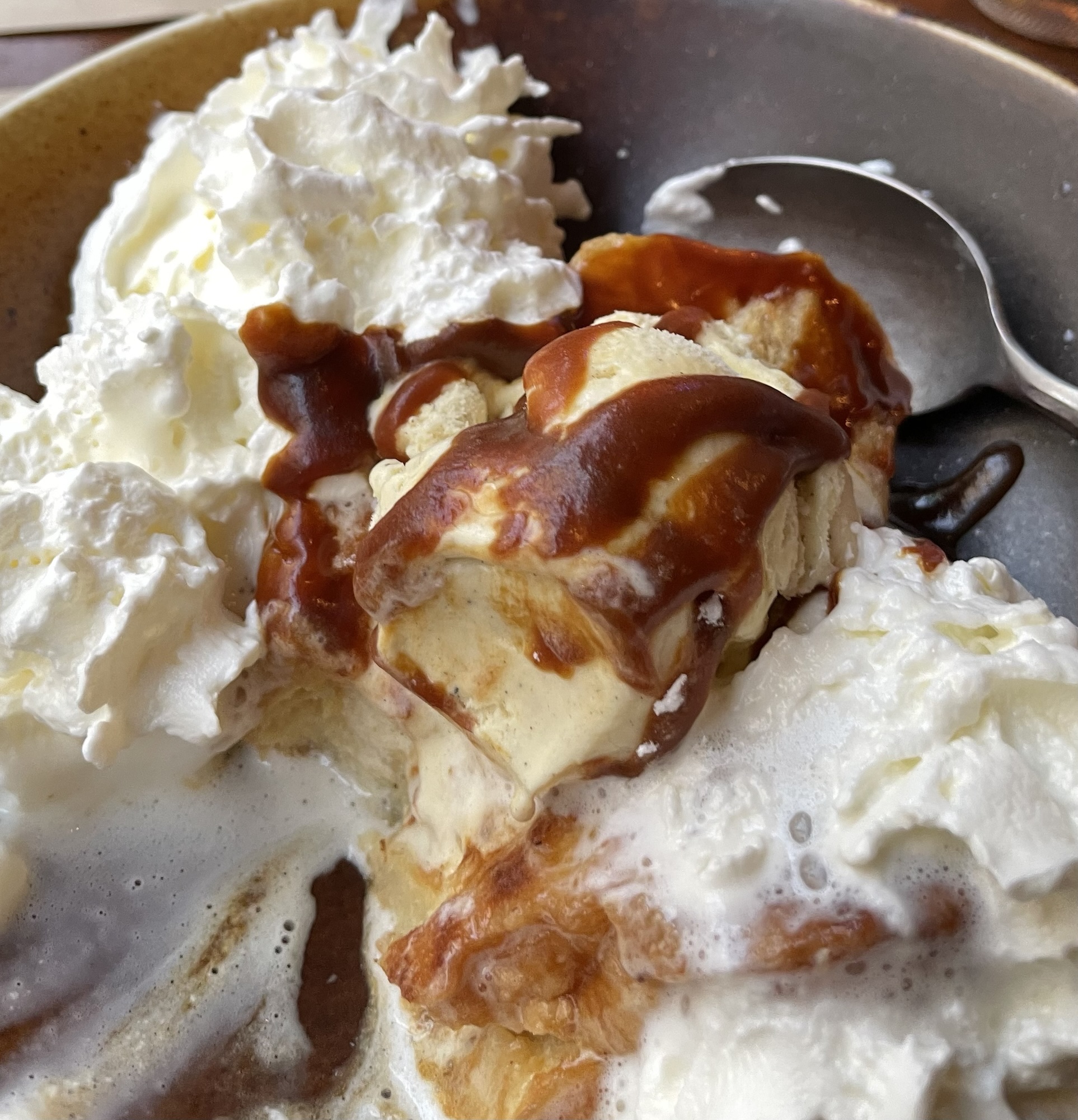 Poni’s salade cobbBrioche Perdue came with 3 scoops of whipped creamGreat vibe, so friendly