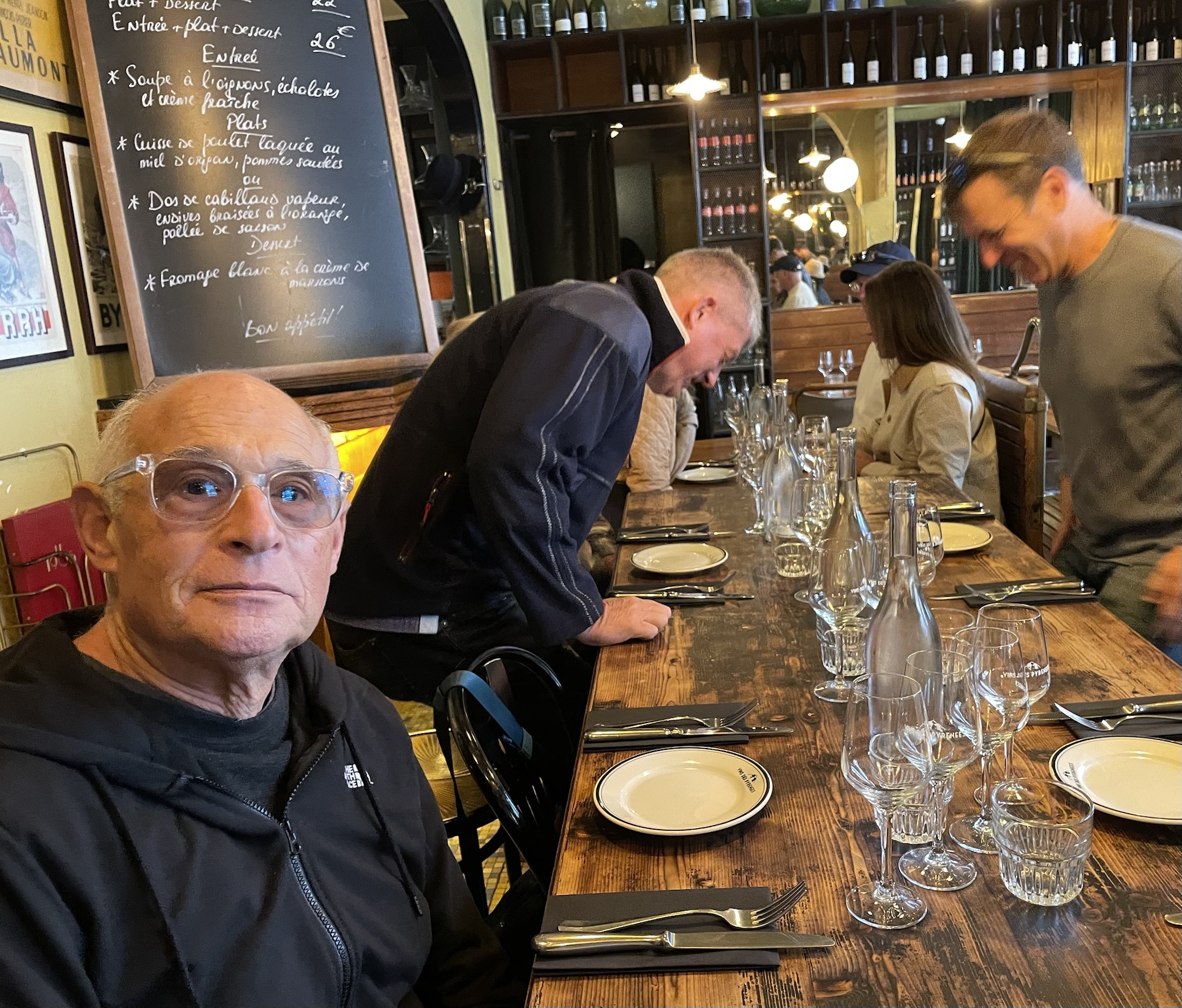 Feel the vibes and leave if you do not feel comfortable. One of our last evenings I got out my list and we headed to a recommended place. Walked out…just didn’t feel friendly. We kept going and wandered into Comptoir des Archives, a casual, kind of jammed small bistrot, and immediately felt good. I had duck confit and roasted potatoes which were both delicious, as was David’s veal stew with rice. Small wooden tables, some jostling to get seated, and a great meal.