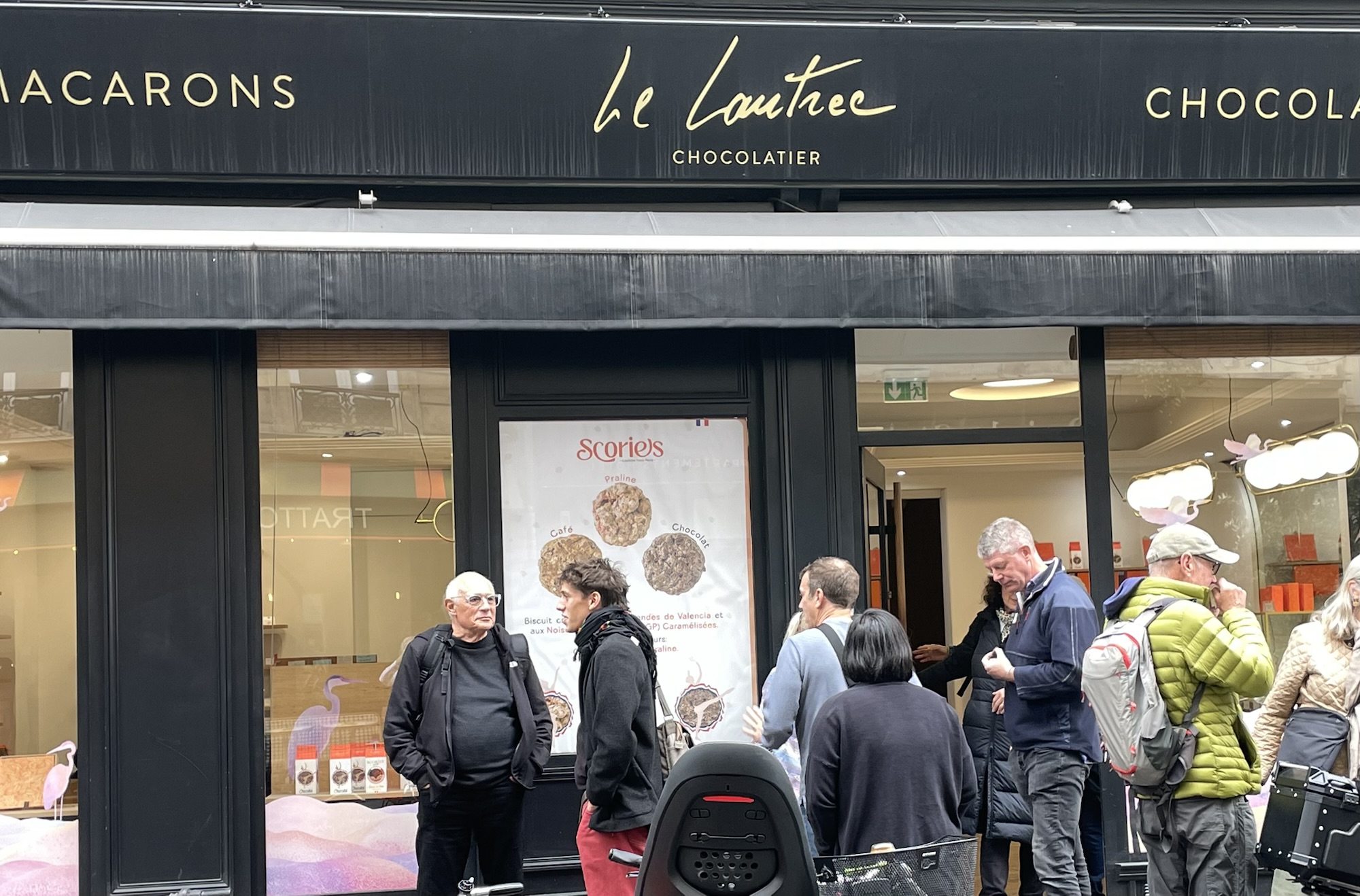 Next we were guided through hidden gardens and picturesque streets, with a bit more history, and paused in the small Jewish area where our guide sadly told us the falafel place he wanted us to sample was closed for Sukkot. We groaned—so much food! But he had a consolation prize, a nearby chocolate shop where we each got to pick 3 chocolates and/or macarons. I am not a macaron fan but these were ethereal, and it was easily the best chocolate I have ever had. We walked some more, learned more about the neighborhood, and then a last stop at a meringue shop. I passed, David popped one down, and we hurried off to a 2pm entry at the Musee Jacquemart-Andre.