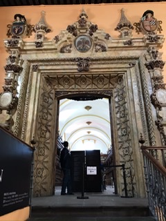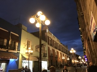 The dark mole, almost always served over chicken or a chicken wrapped in a corn tortilla, is sprinkled with sesame seeds and is intensely flavored with a very definite chocolate undertone. A little too sweet for me, but David loved it. We also had a mole “house specialty” at the sister hotel Meson Sacristia de la Compania which was not at all sweet, even a bit sour/tangy. I loved that one. The other common mole in Puebla is pipian, ground squash seeds which I liked as well, lots of cumin and a hint of tahini-like flavor. We had this trio at Fonda de la Santa Clara over beef—we were a little tired of chicken on our last night.