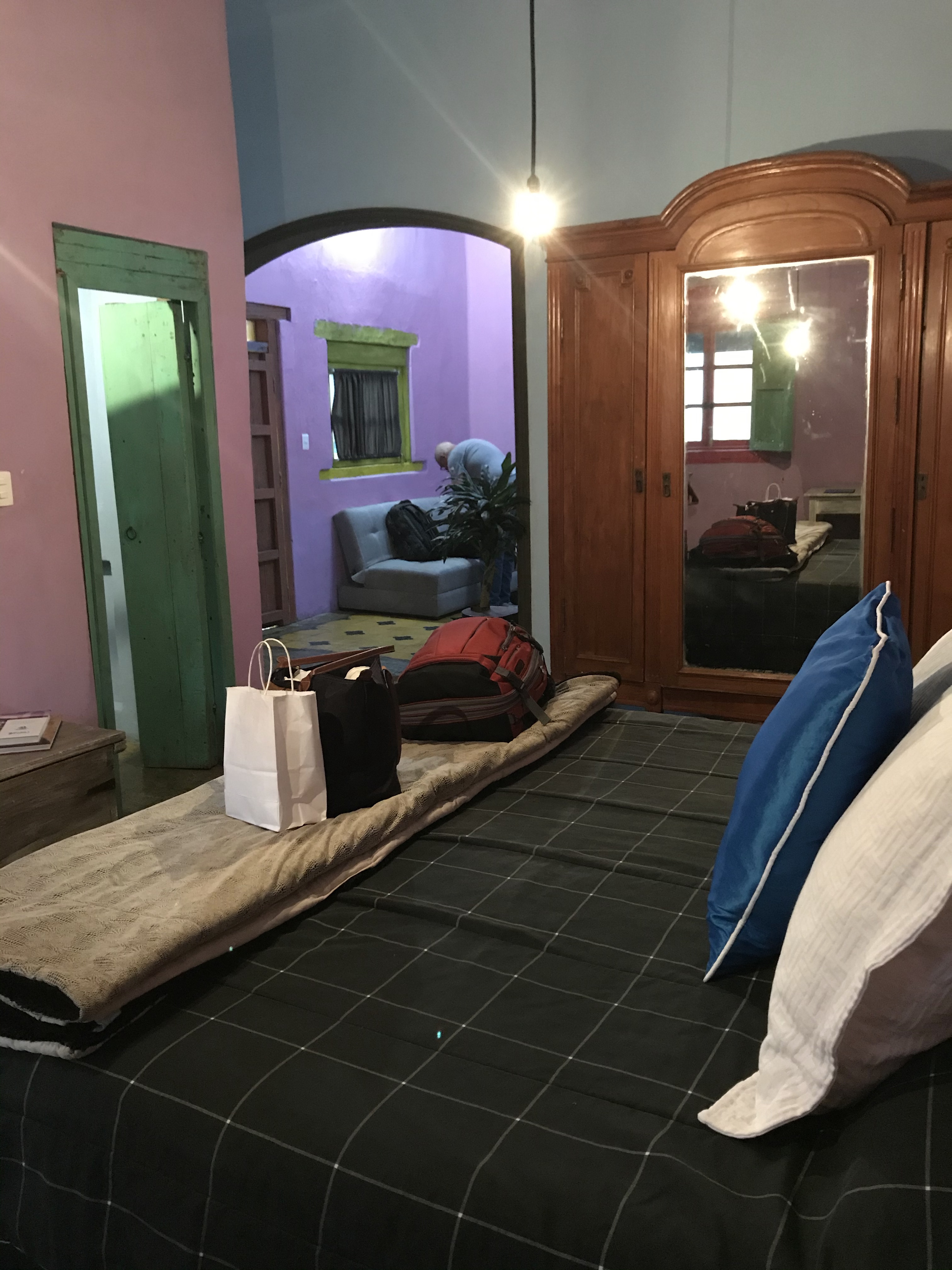 Small white rolls, which are somehow hollow, are cut in half. The place we went—recommended by our Uber driver, letting us off there instead of taking us back to the hotel as he told the owner “I have some tourists here who want chanclas”— was of course tiny so I could watch the assembly which included shredded chicken, slices of avocado, the top of the roll and then the entire plate is filled with a thin red sauce similar to the red sauce we know from red enchiladas in the states. One order is four chanclas—I ALMOST finished mine, though David had no trouble with his four.